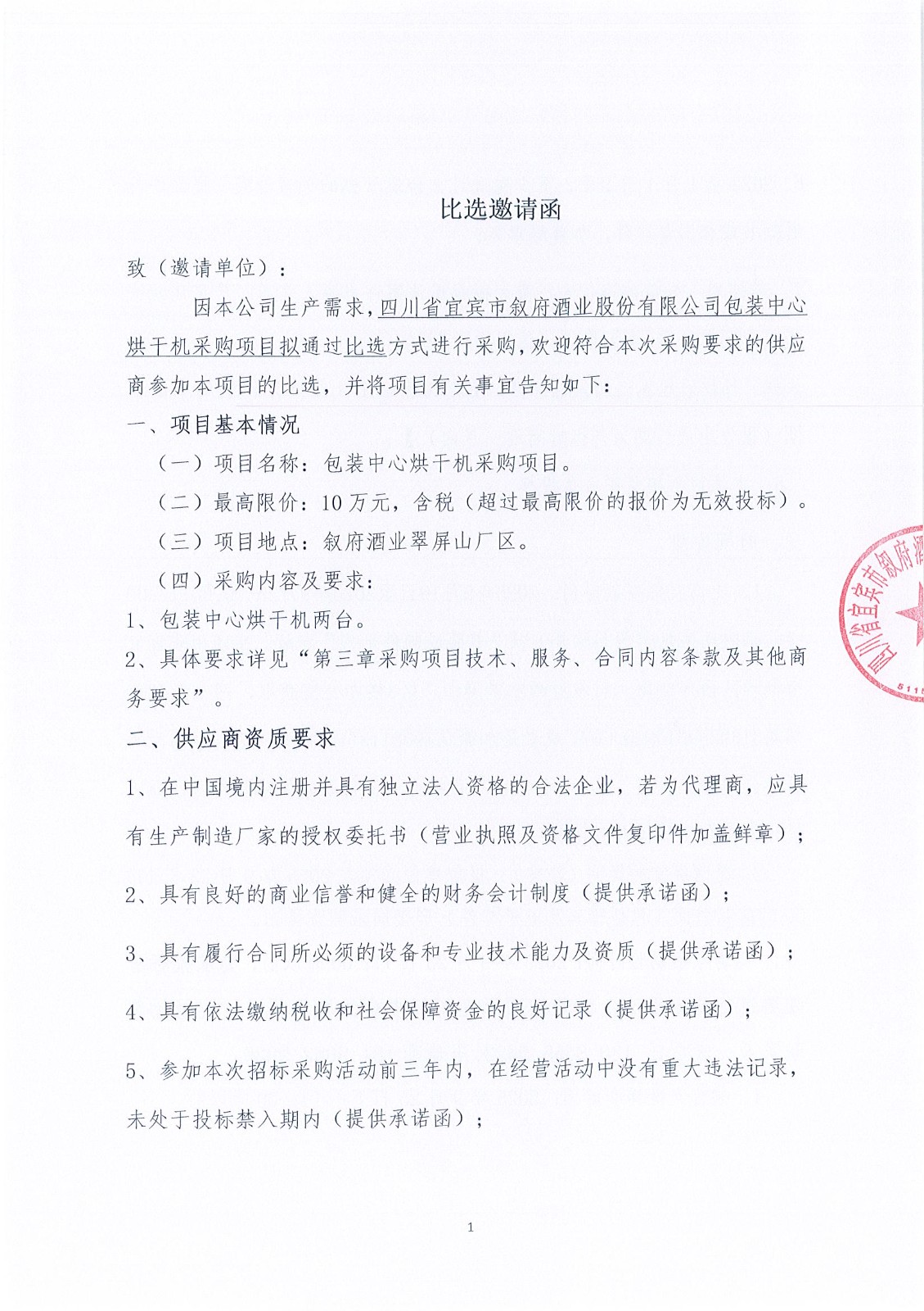 四川省宜賓市敘府酒業(yè)股份有限公司包裝中心烘干機(jī)采購(gòu)項(xiàng)目流標(biāo)公示公告