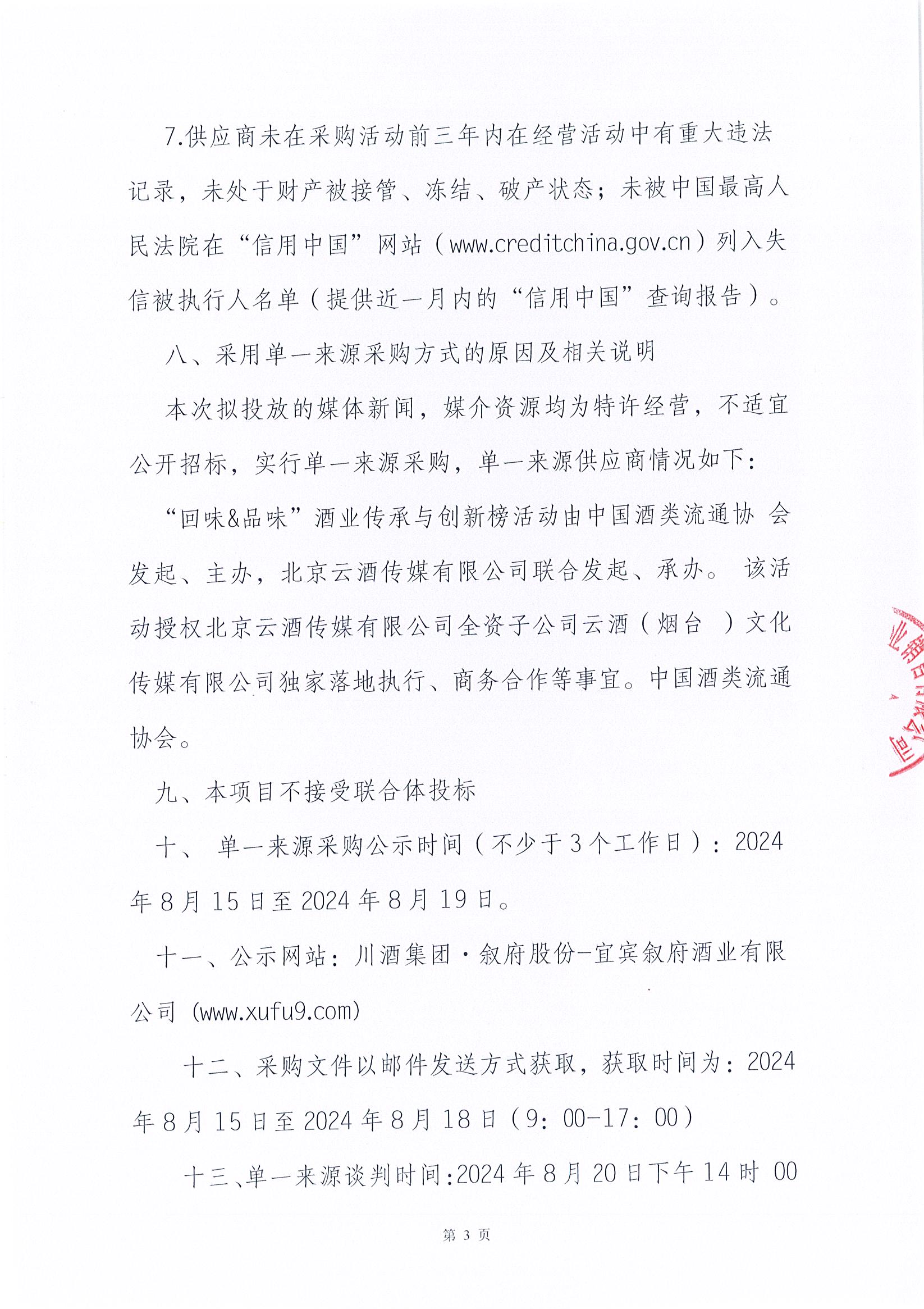 四川省敘府酒業(yè)銷售有限公司回味&品味酒業(yè)傳承與創(chuàng)新榜活動單一來源采購項目中標(biāo)結(jié)果公示公告