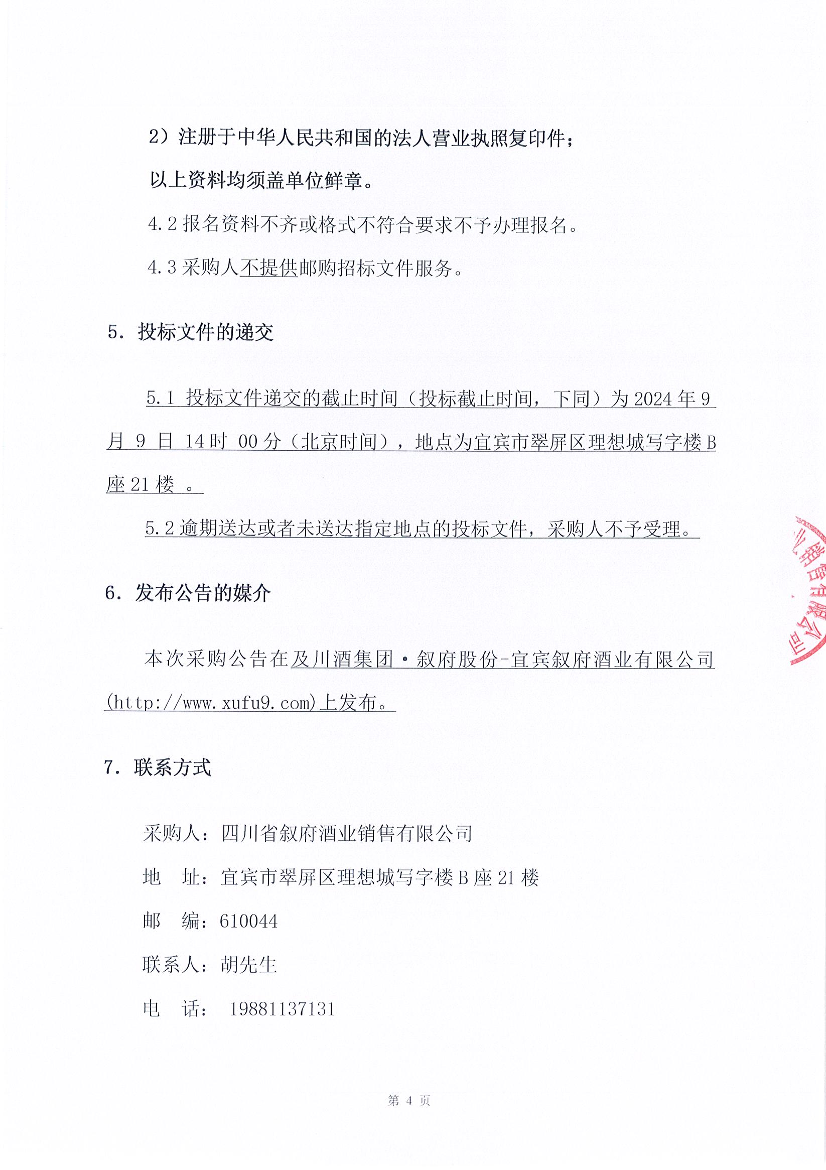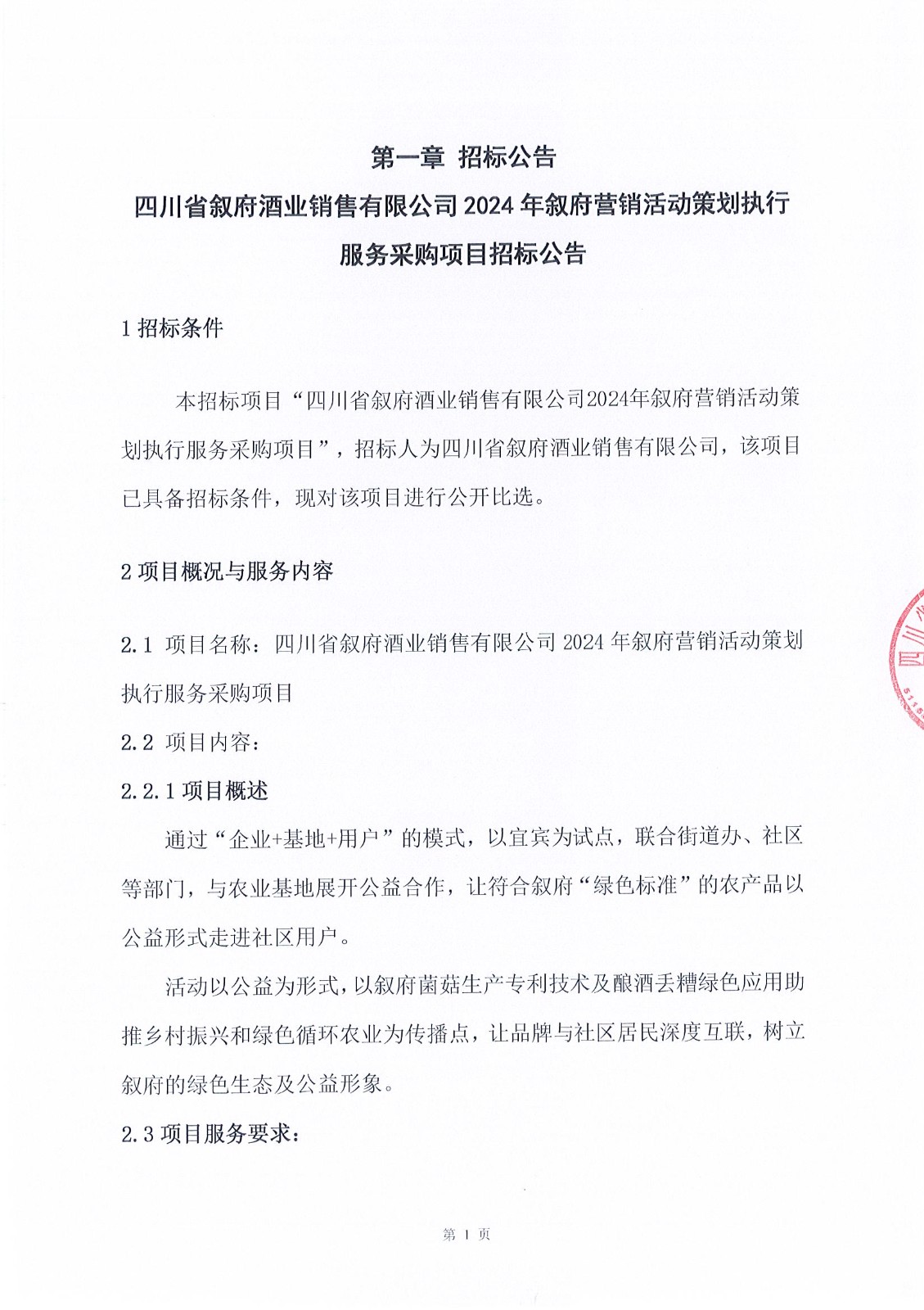 四川省敘府酒業(yè)銷售有限公司2024年 敘府營銷活動策劃執(zhí)行服務(wù)采購項目招標公告