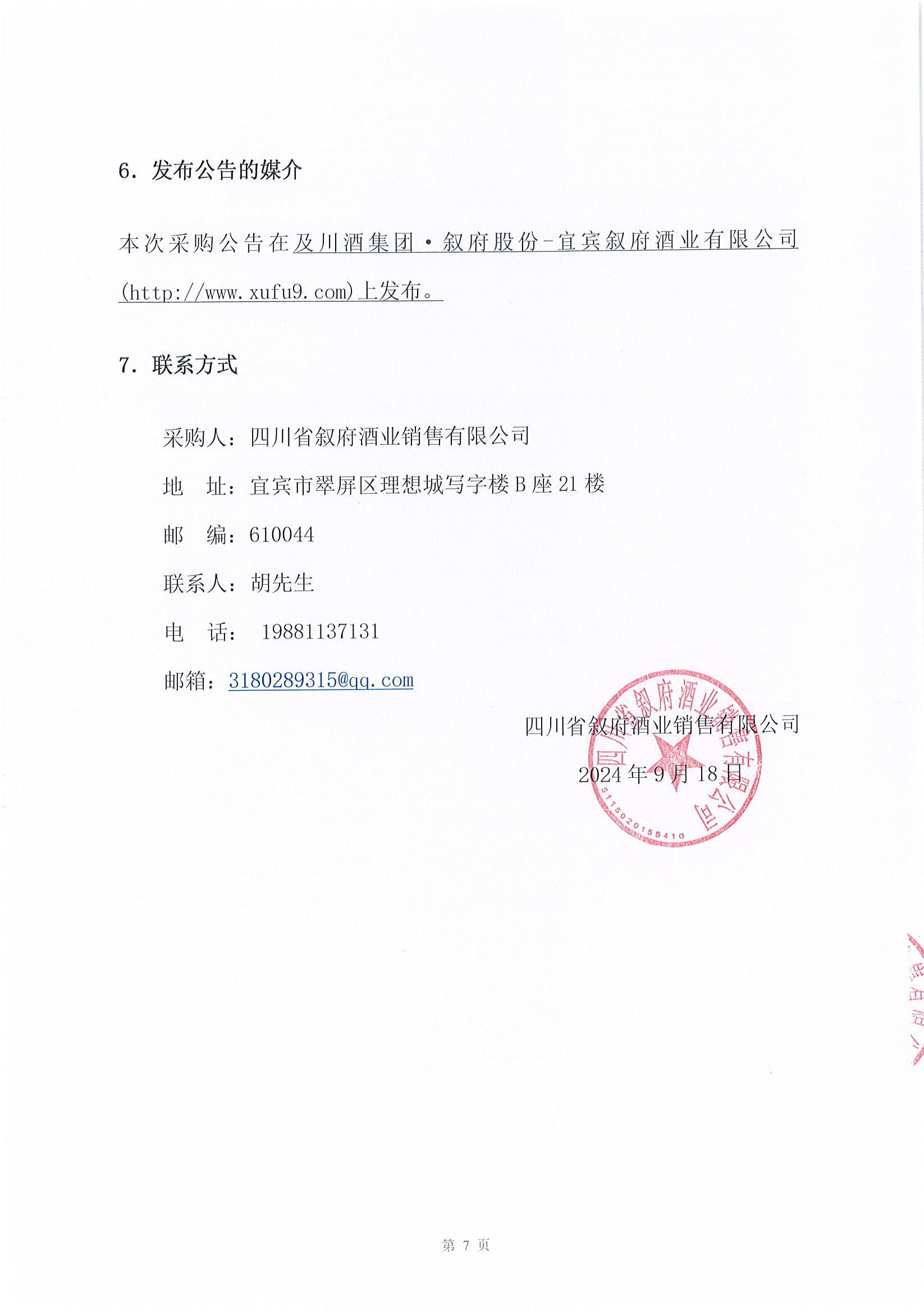 四川省敘府酒業(yè)銷售有限公司2024年敘府藍標文化季媒體投放采購項目比選結(jié)果公示公告