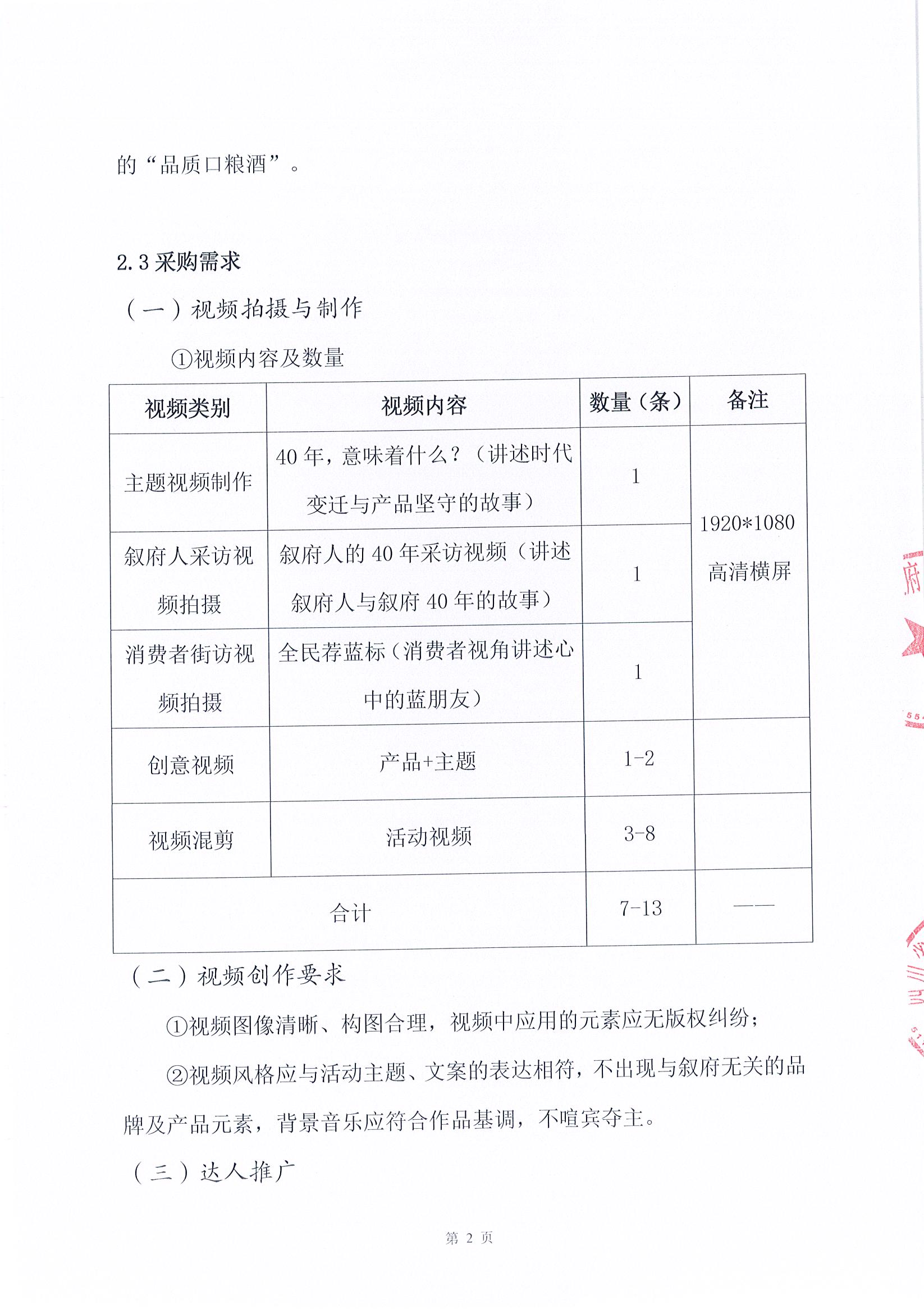 四川省敘府酒業(yè)銷售有限公司敘府大曲(藍標)產(chǎn)品TVC的創(chuàng)作與拍攝采購項目中標結(jié)果公示公告