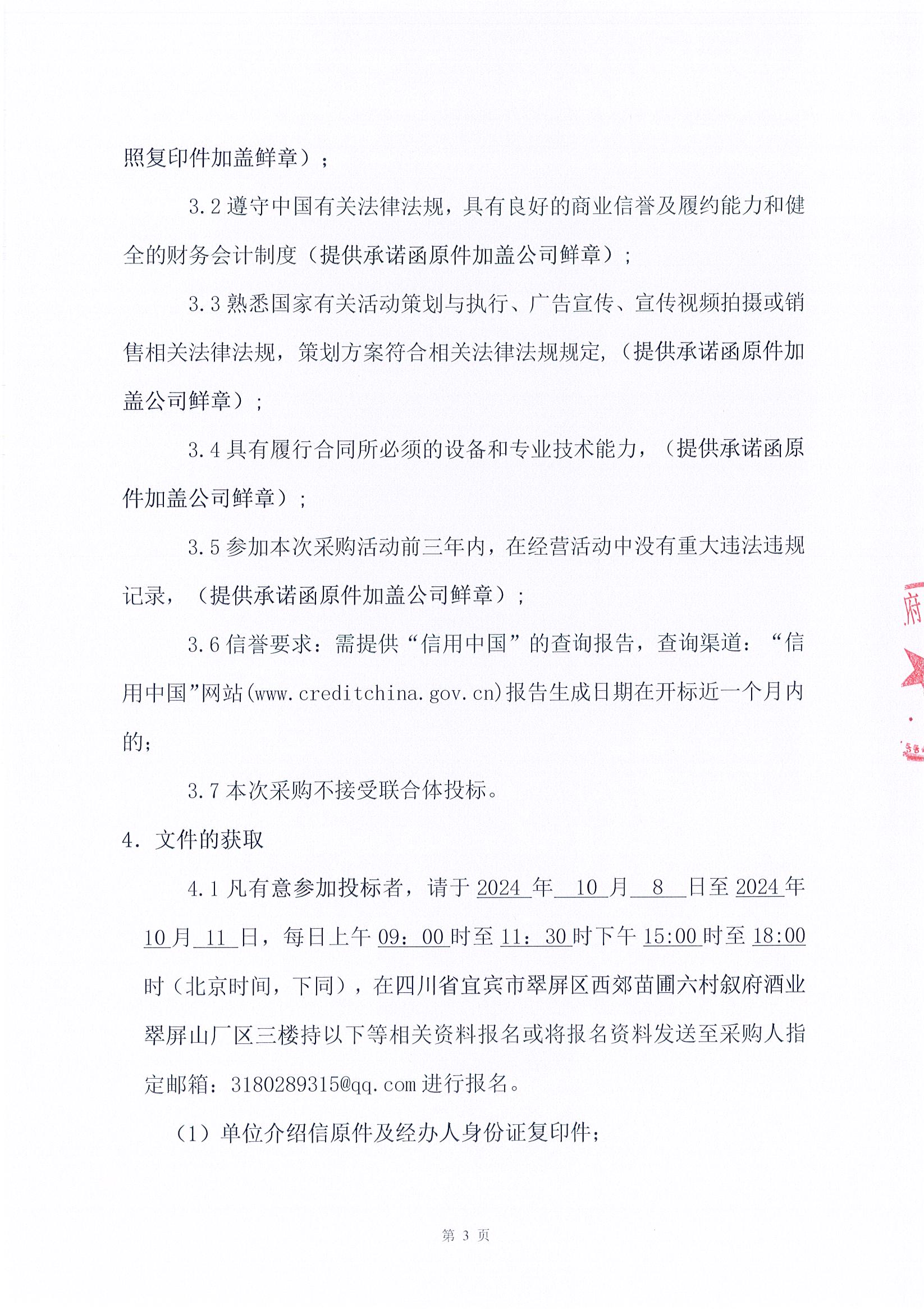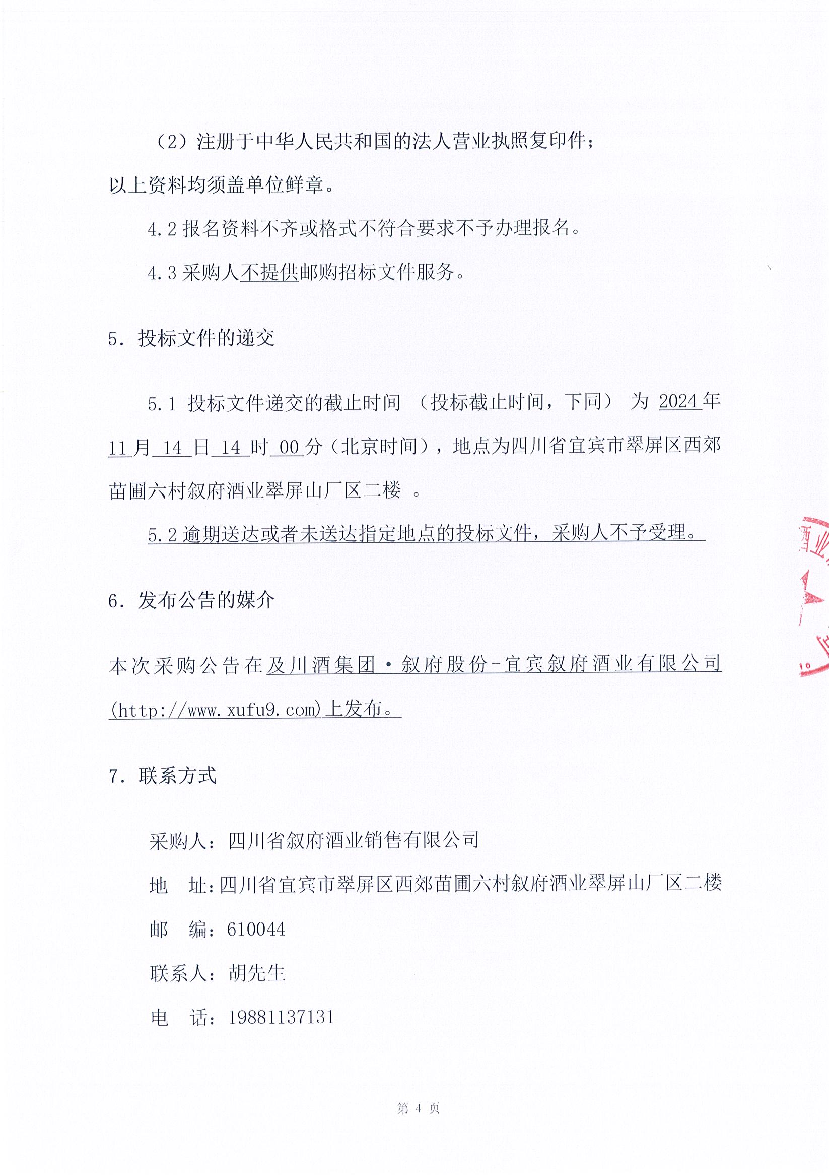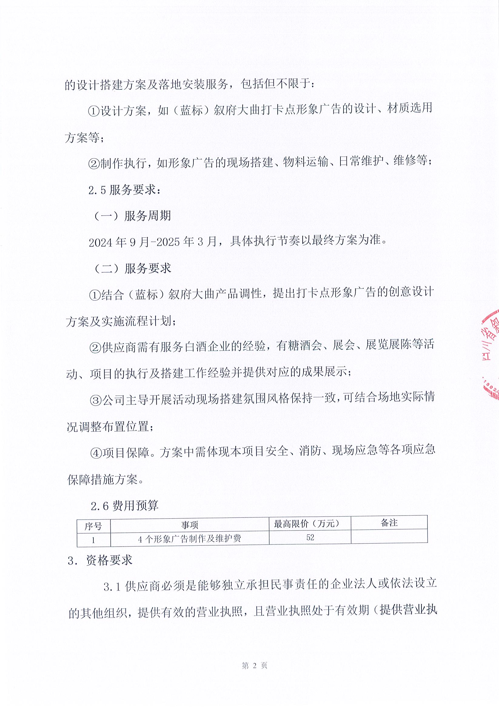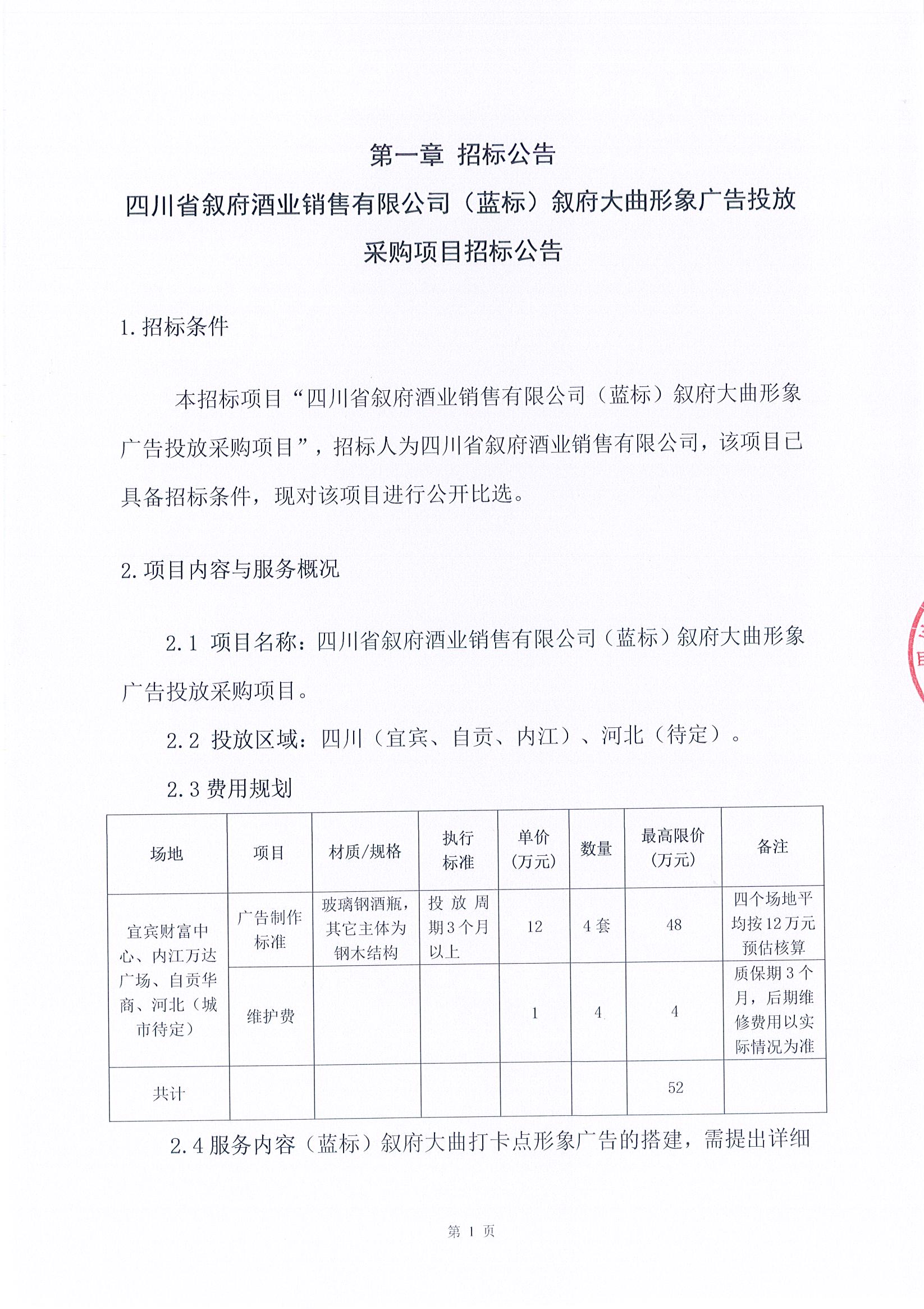 四川省敘府酒業(yè)銷售有限公司2024年敘府藍標文化季媒體投放采購項目比選結果公示公告
