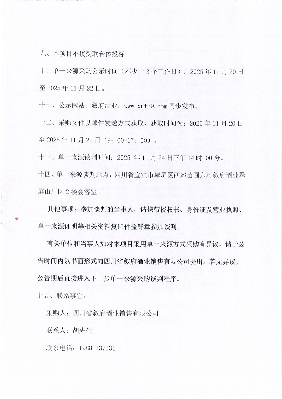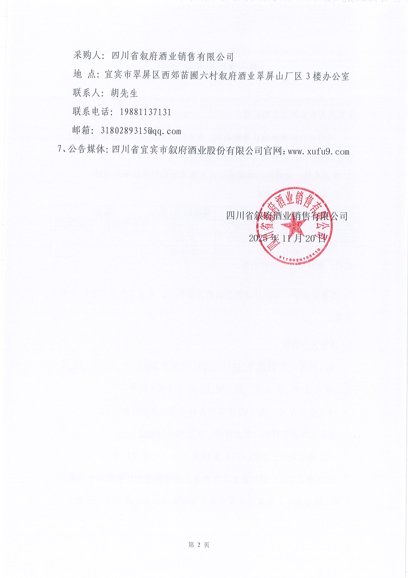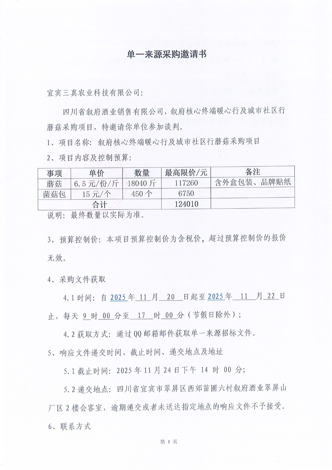 四川省敘府酒業(yè)銷售有限公司敘府核心終端暖心行及城市社區(qū)行、蘑菇單一來(lái)源采購(gòu)項(xiàng)目中標(biāo)結(jié)果公示公告