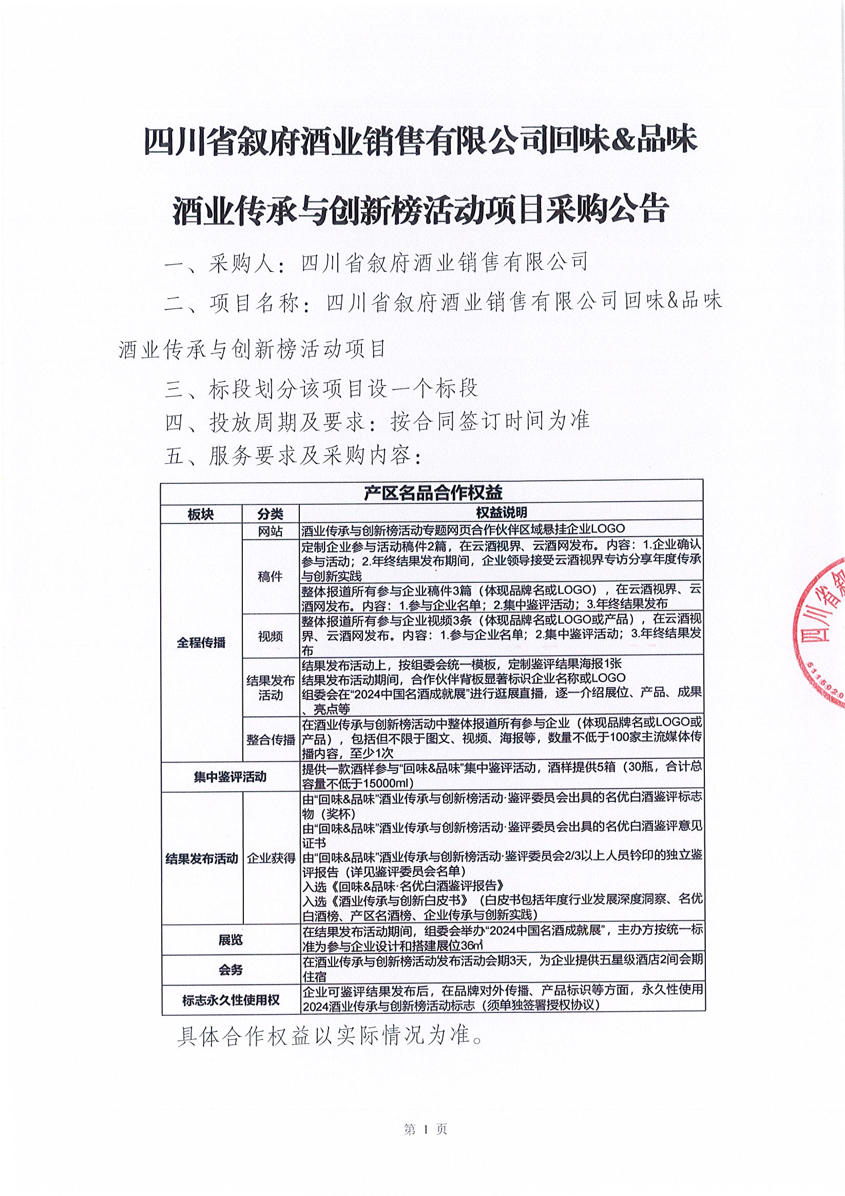 四川省敘府酒業(yè)銷售有限公司回味&品味酒業(yè)傳承與創(chuàng)新榜活動(dòng)采購(gòu)項(xiàng)目單一來(lái)源采購(gòu)公告