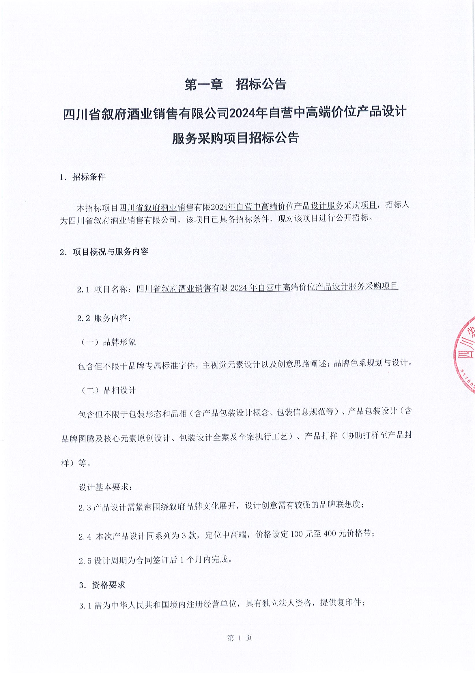 四川省敘府酒業(yè)銷售有限公司 2024年自營中高端價位產(chǎn)品設(shè)計(jì)服務(wù)采購項(xiàng)目招標(biāo)公告