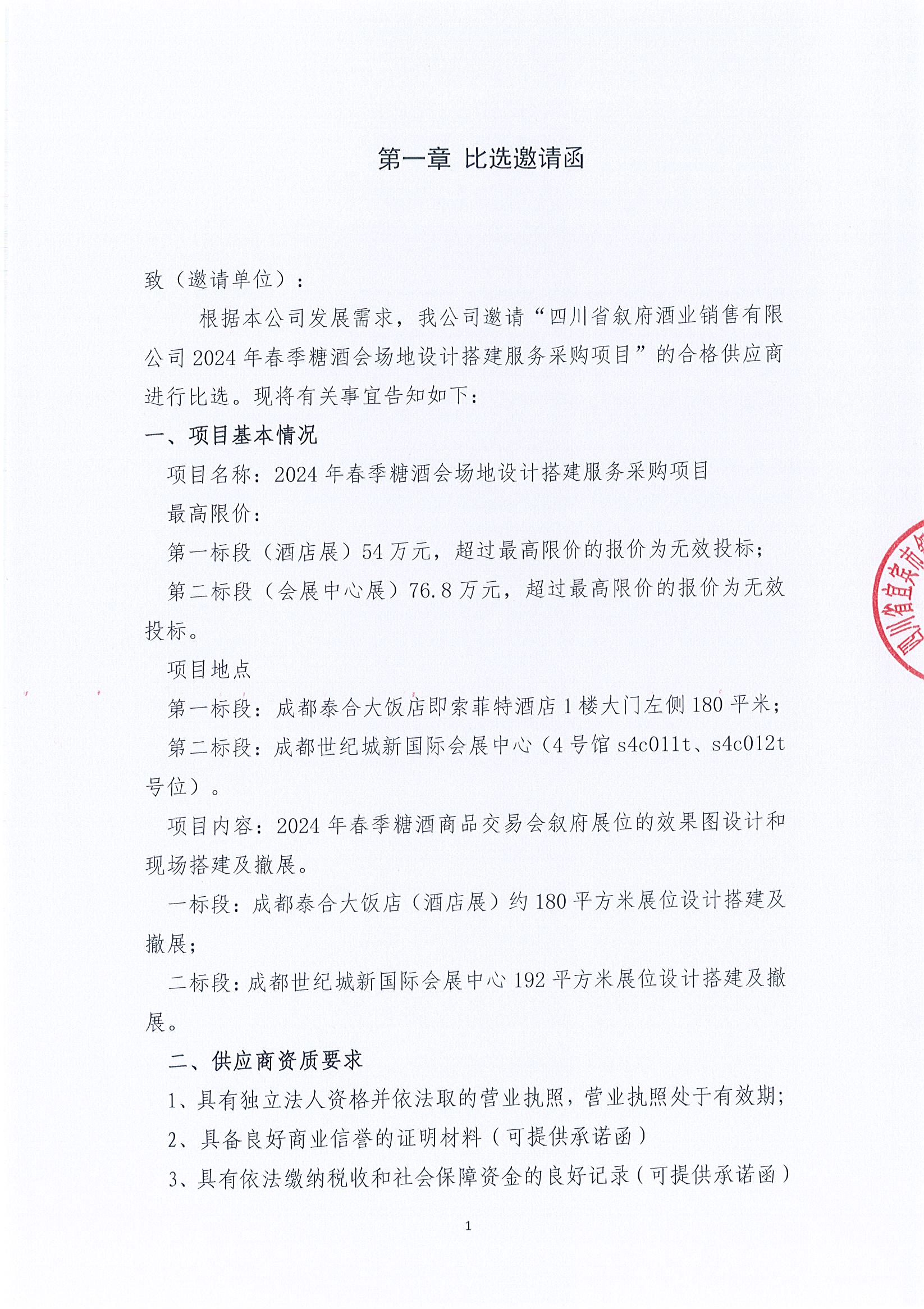四川省敘府酒業(yè)銷售有限公司2024年春季糖酒會(huì)場地設(shè)計(jì)搭建服務(wù)采購項(xiàng)目掛網(wǎng)公示公告
