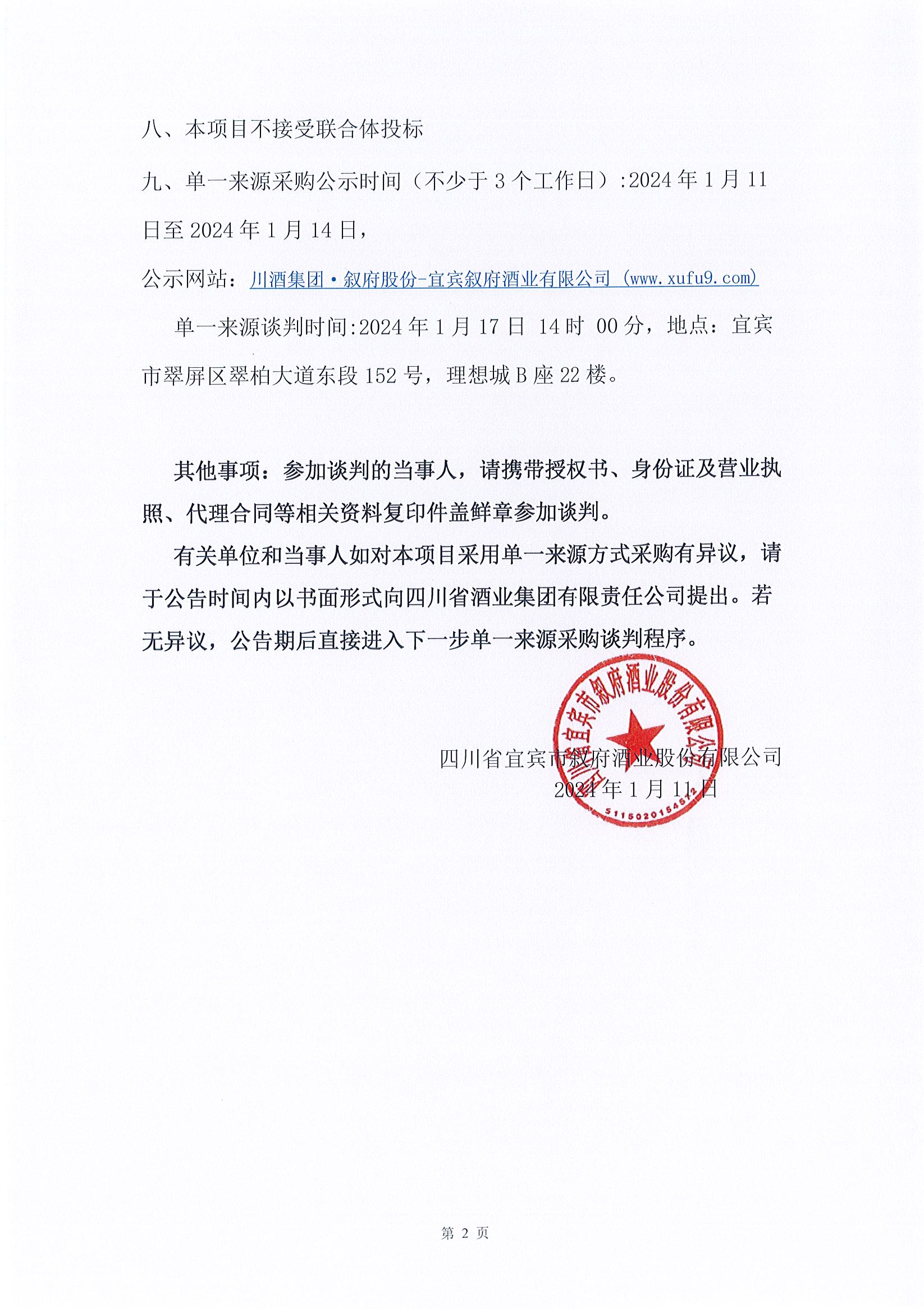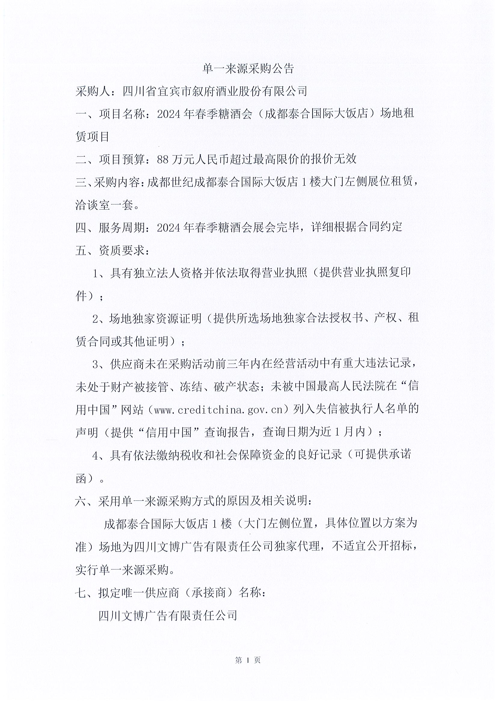四川省宜賓市敘府酒業(yè)股份有限公司 2024年春季糖酒會(huì)(會(huì)展中心場(chǎng)地展)場(chǎng)地租賃公示公告