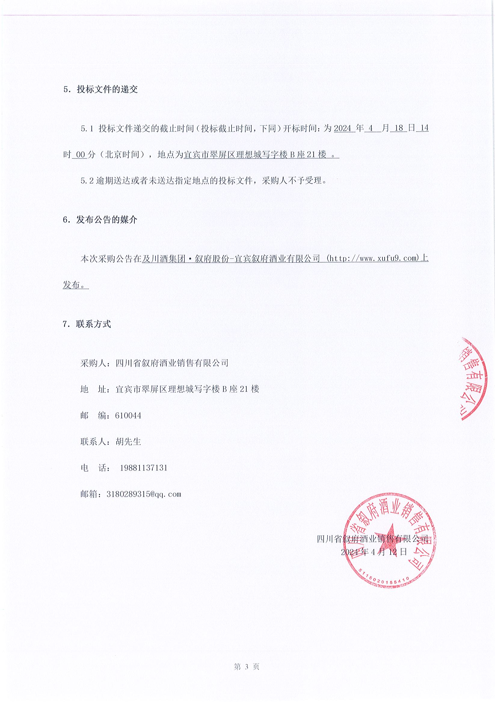 四川省敘府酒業(yè)銷售有限公司敘府大曲(藍(lán)標(biāo))產(chǎn)品TVC的創(chuàng)作與拍攝采購項(xiàng)目中標(biāo)結(jié)果公示公告