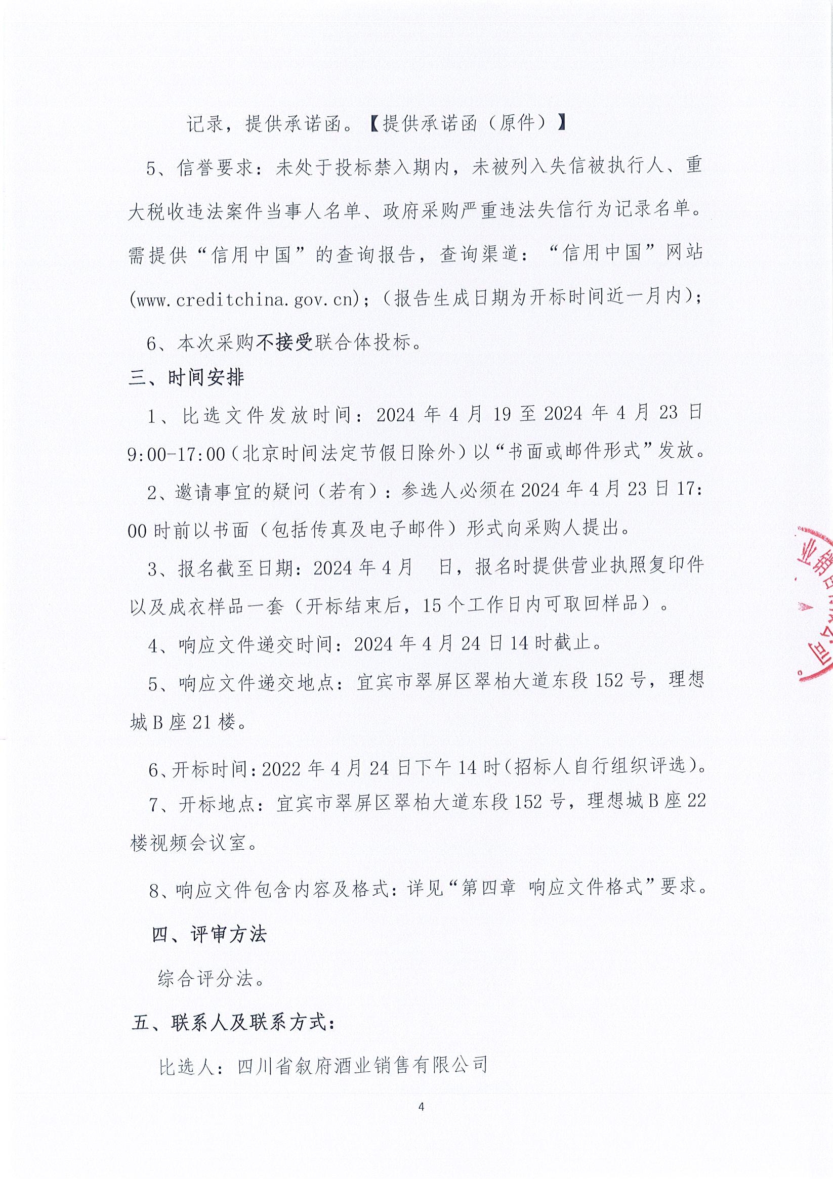 (第二次)四川省敘府酒業(yè)銷售有限公司2024年自營中高端價位產(chǎn)品設(shè)計服務(wù)采購項目招標(biāo)公示公告