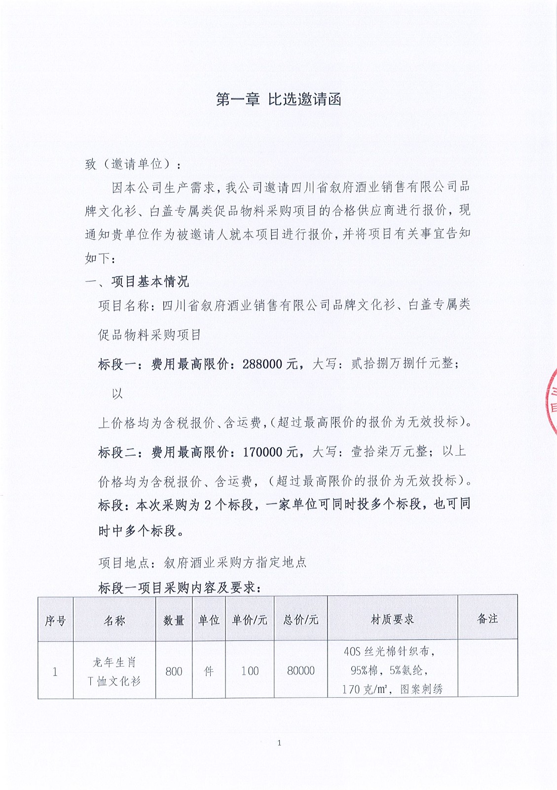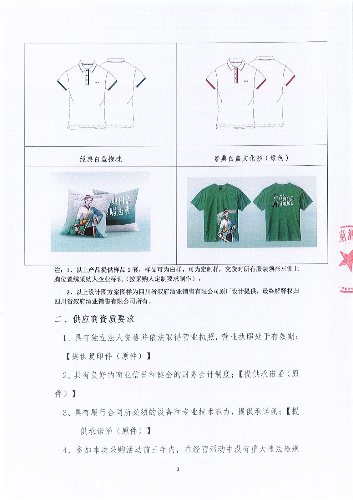 四川省敘府酒業(yè)銷售有限公司品牌文化衫、白蓋專屬類促品物料采購項目比選結(jié)果公示