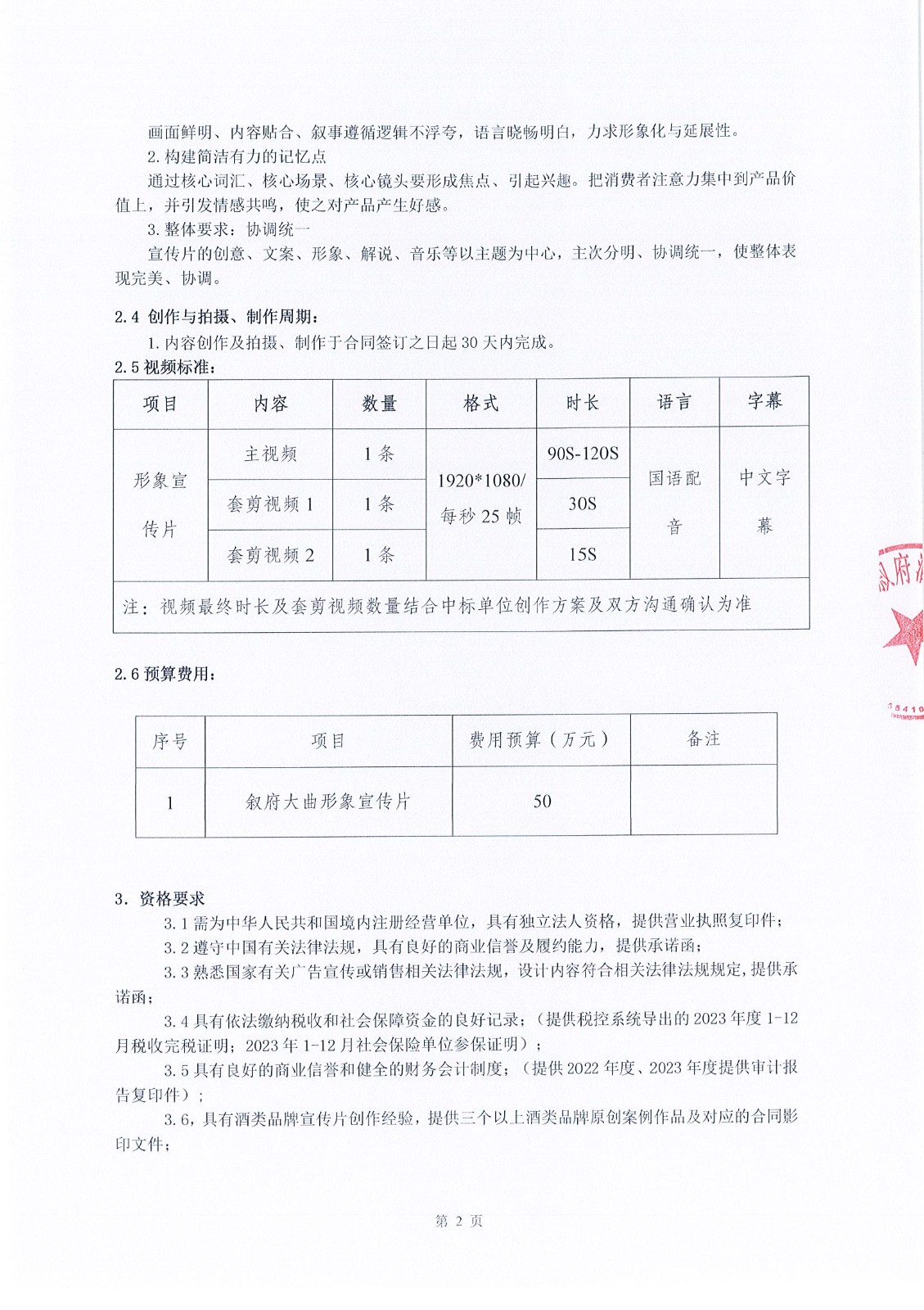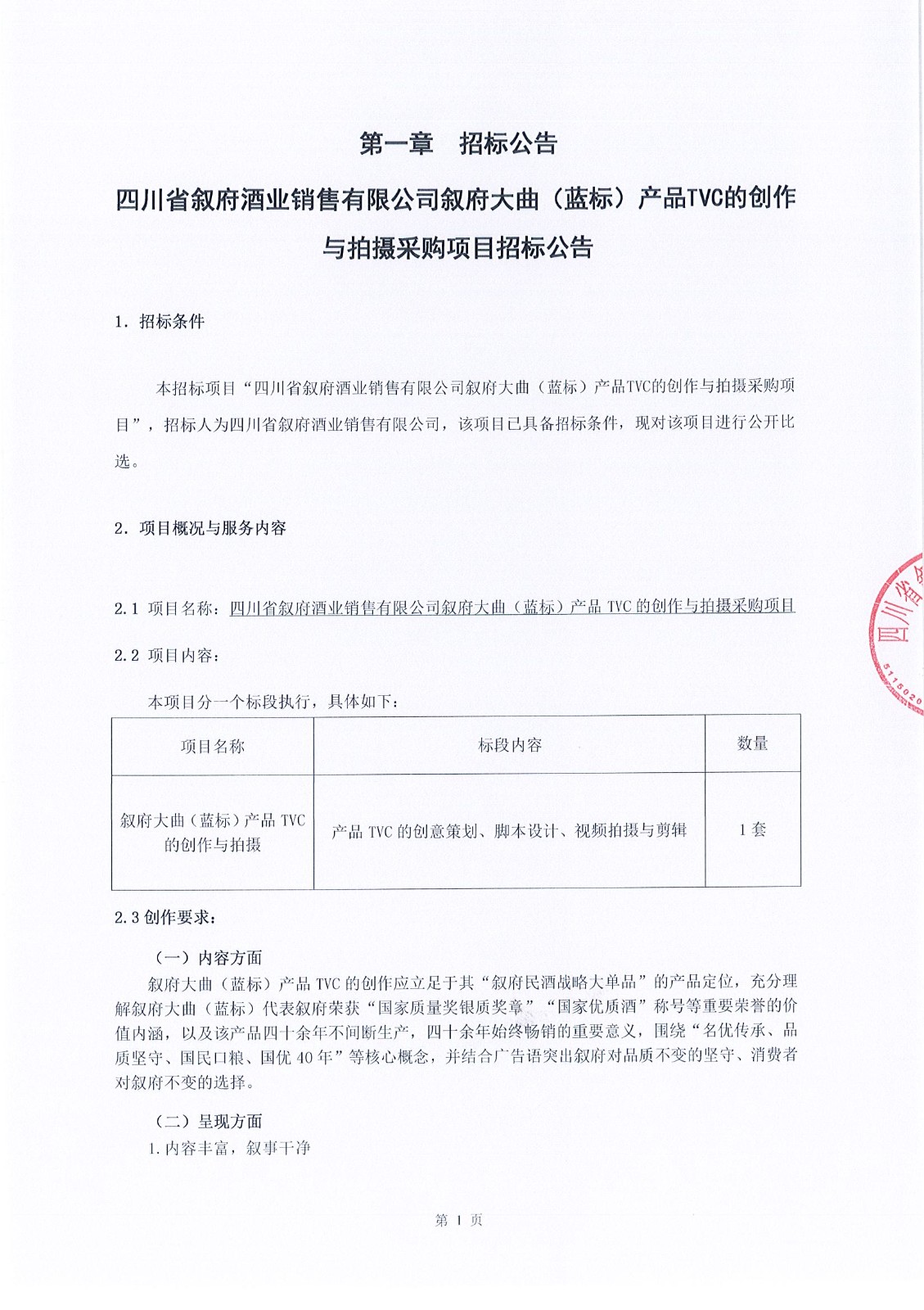 四川省敘府酒業(yè)銷售有限公司敘府大曲(藍標(biāo))產(chǎn)品TVC的創(chuàng)作與拍攝采購項目中標(biāo)結(jié)果公示公告