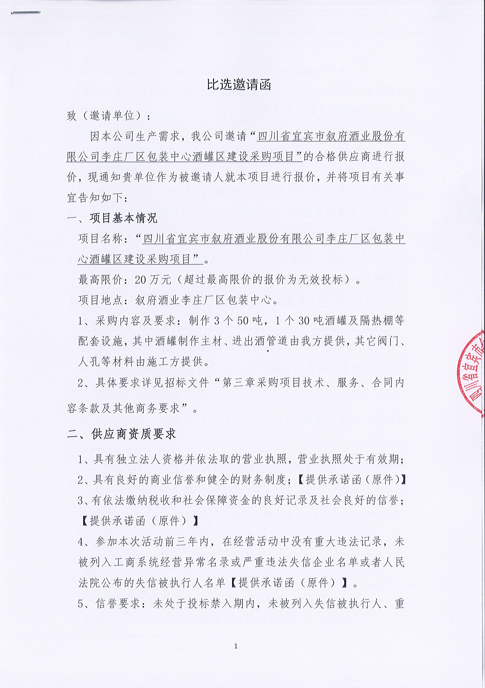 (第二次)四川省宜賓市敘府酒業(yè)股份有限公司李莊廠區(qū)2024年12月-2025年12月丟糟外包處置 項(xiàng)目競價(jià)公告