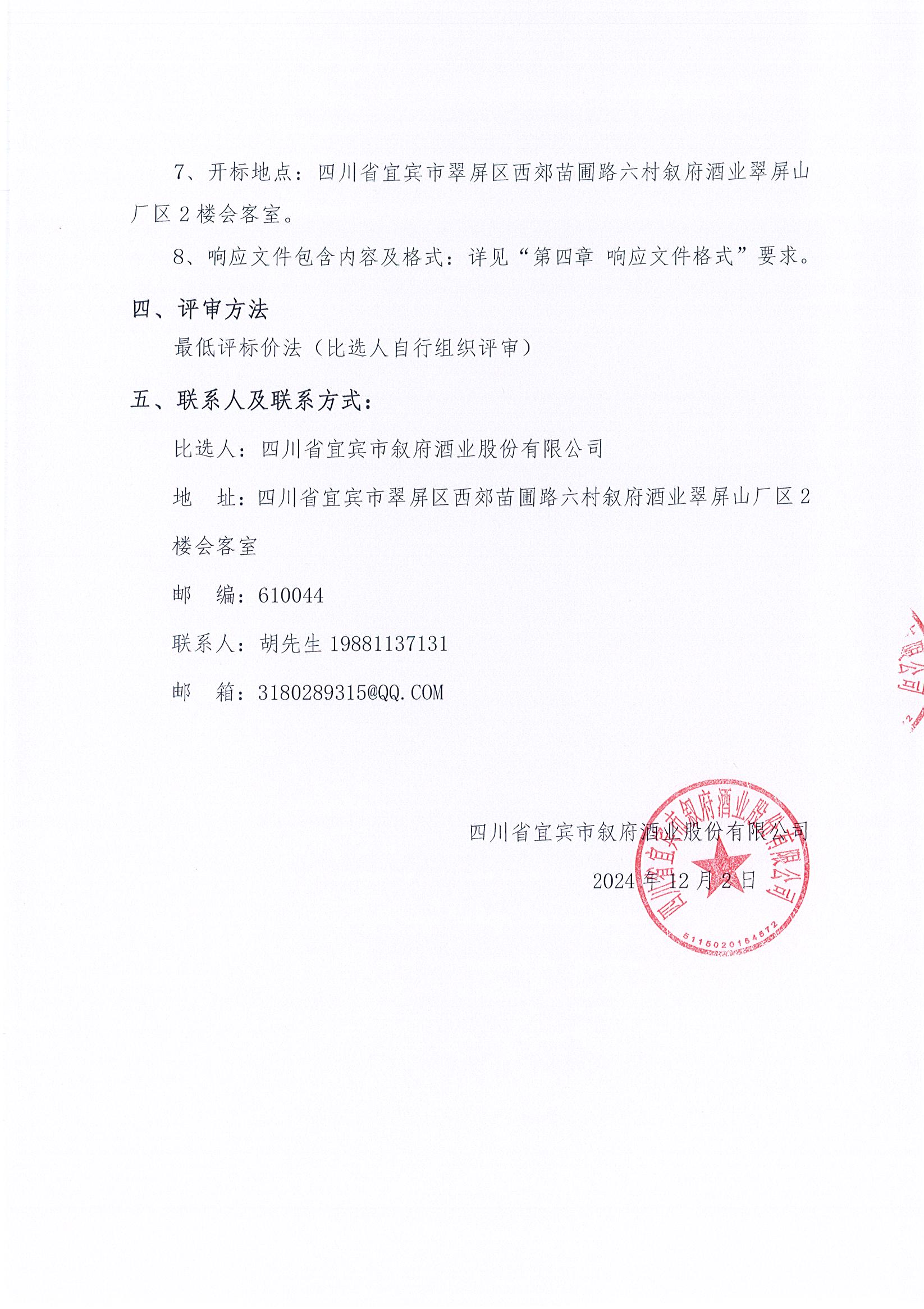 四川省宜賓市敘府酒業(yè)股份有限公司李莊廠區(qū)2024年12月-2025年12月丟糟外包出售競(jìng)爭(zhēng)性談判項(xiàng)目結(jié)果公示