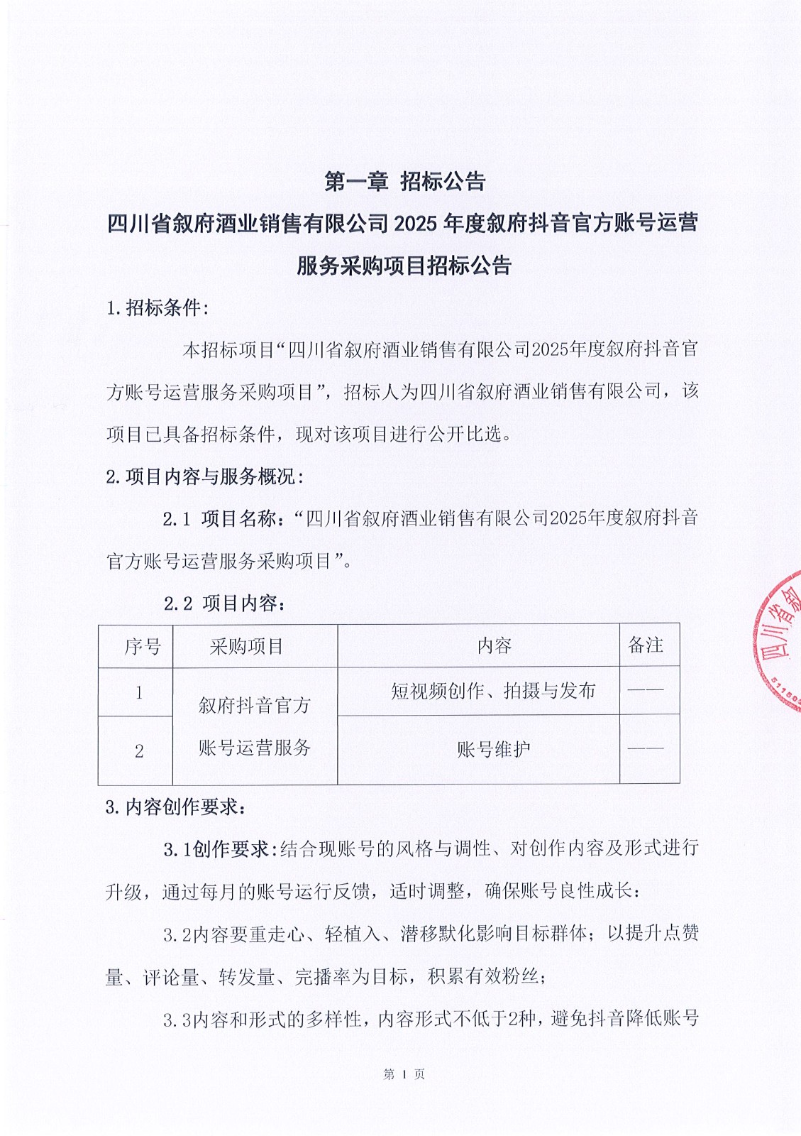 四川省敘府酒業(yè)銷售有限公司敘府大曲(藍(lán)標(biāo))產(chǎn)品TVC的創(chuàng)作與拍攝采購(gòu)項(xiàng)目中標(biāo)結(jié)果公示公告