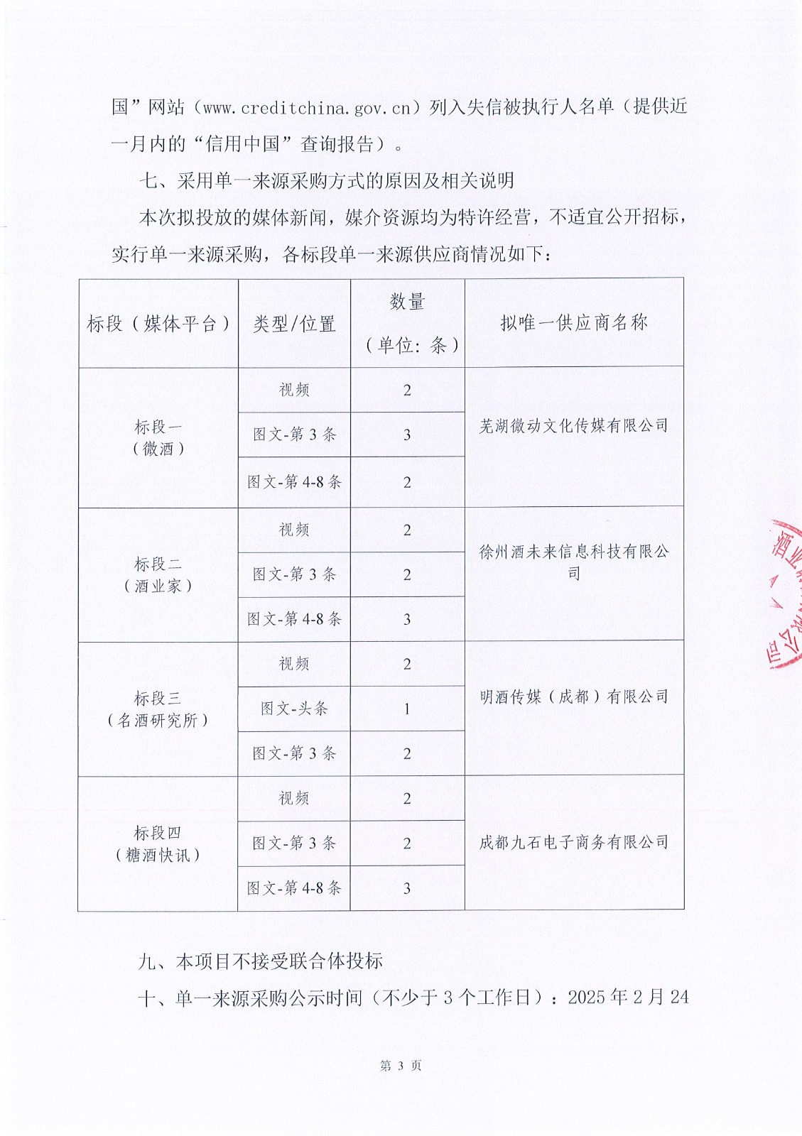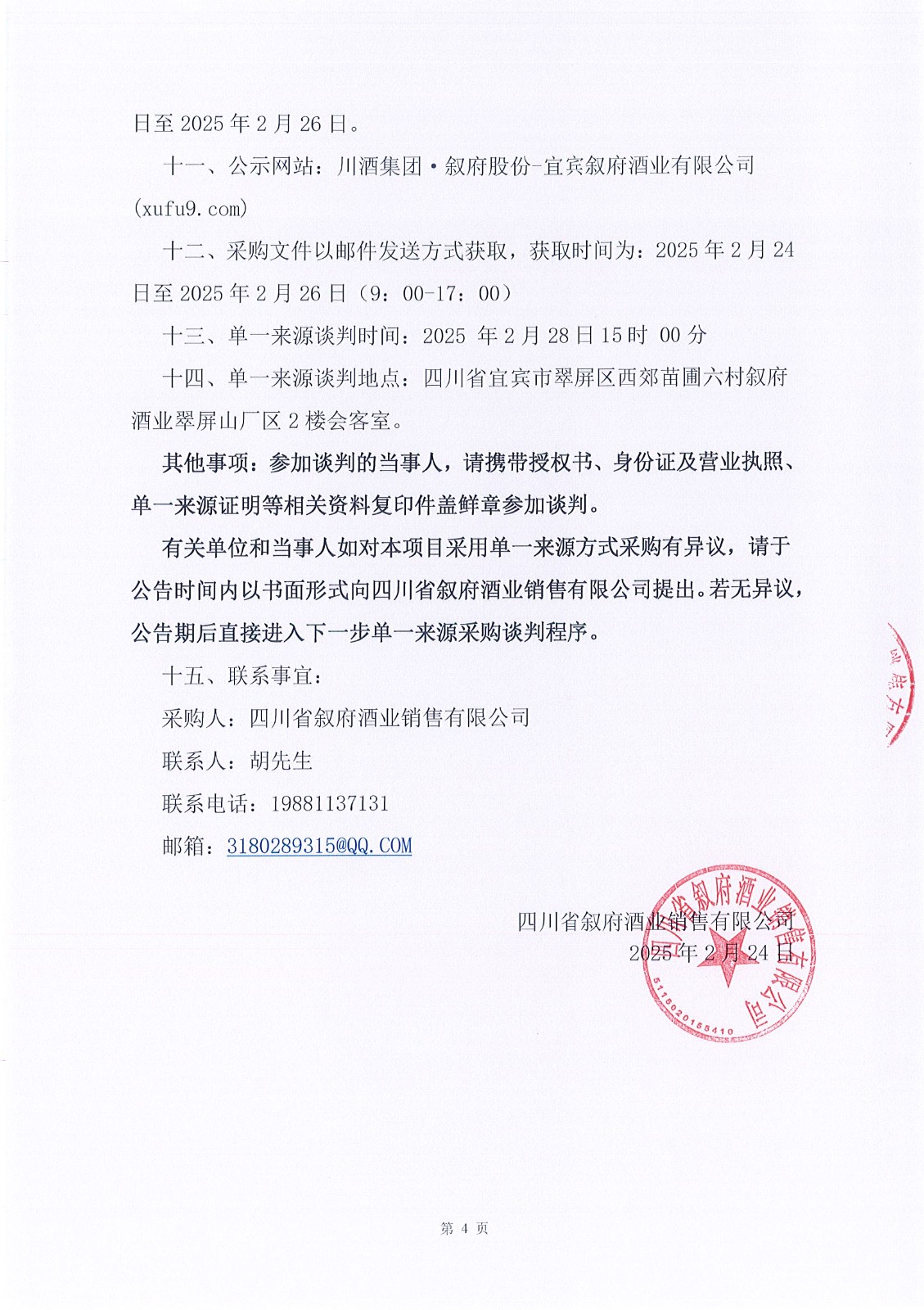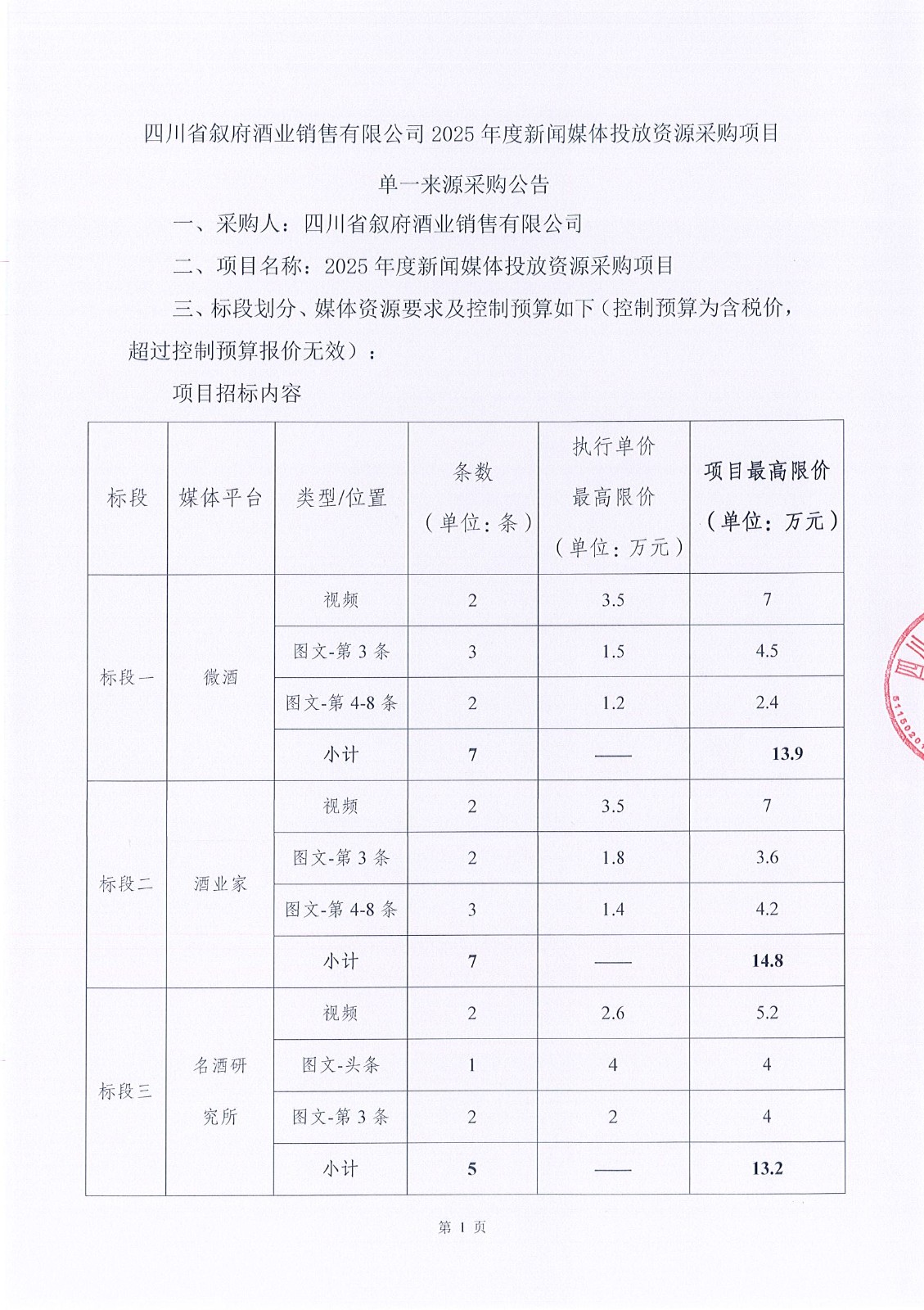 四川省敘府酒業(yè)銷售有限公司2025年度新聞媒體投放資源采購項目單一來源采購邀請書