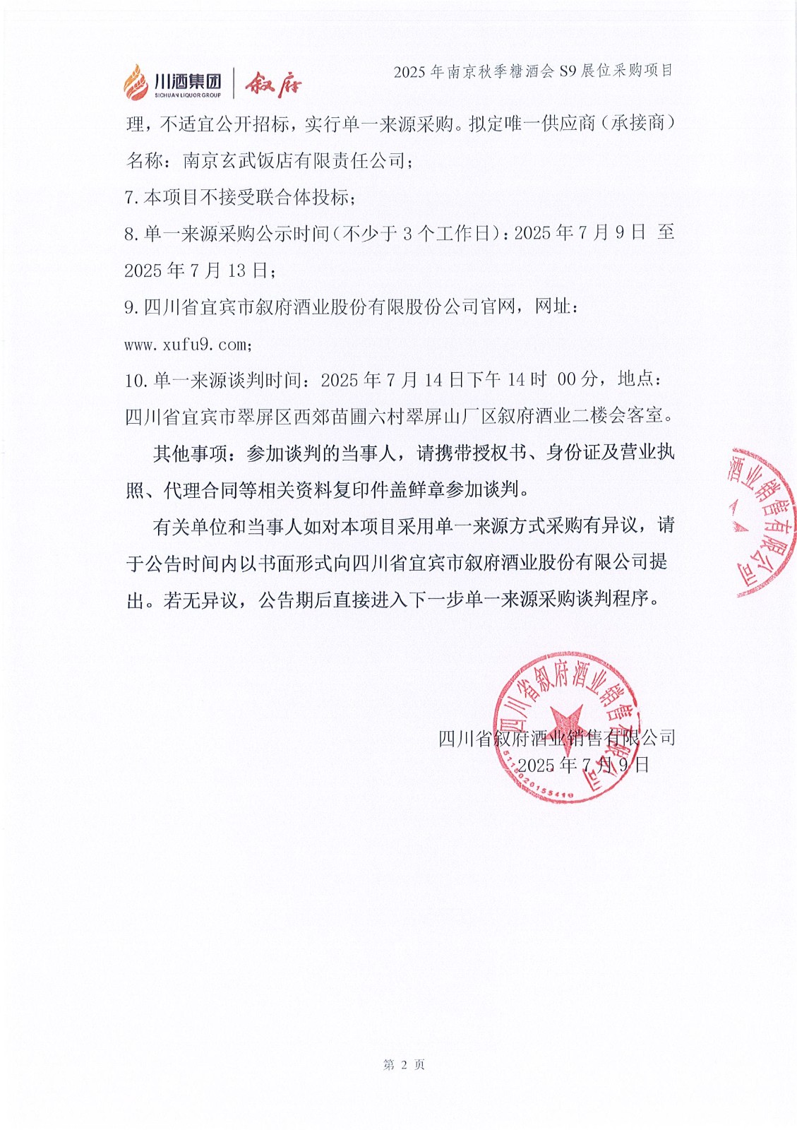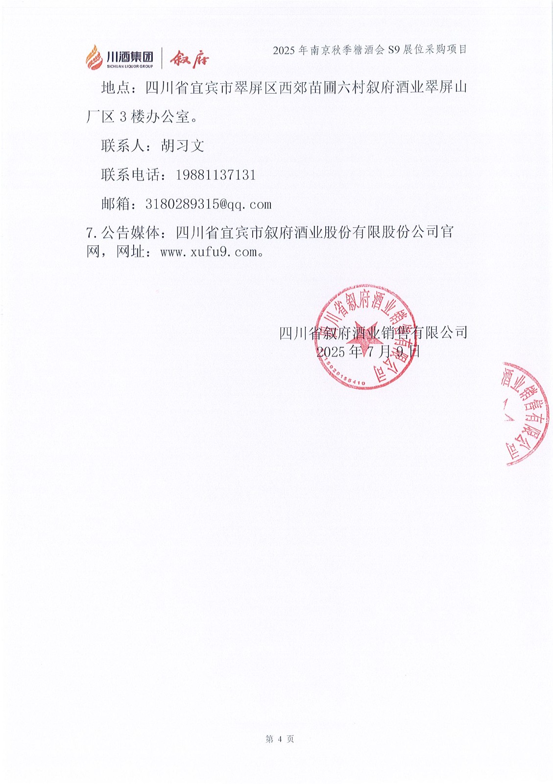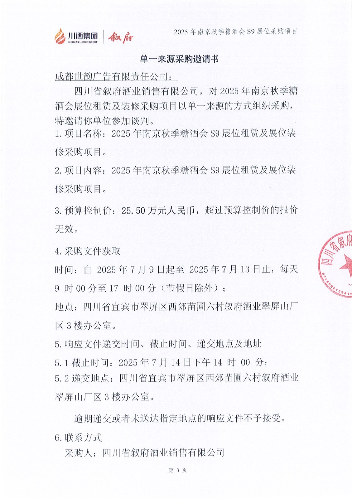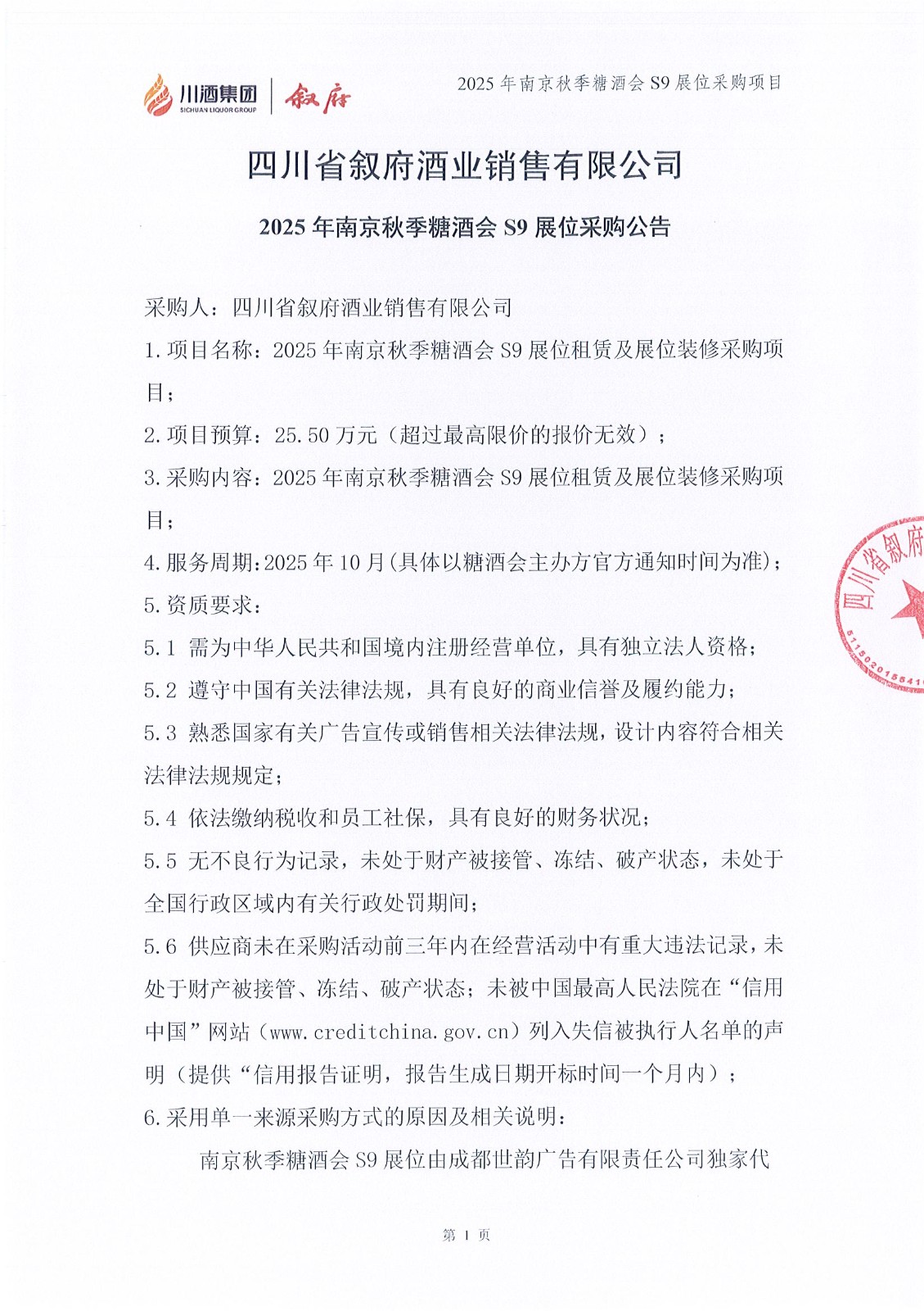 四川省敘府酒業(yè)銷(xiāo)售有限公司2025年宜賓西站大燈箱廣告投放采購(gòu)項(xiàng)目采購(gòu)公告