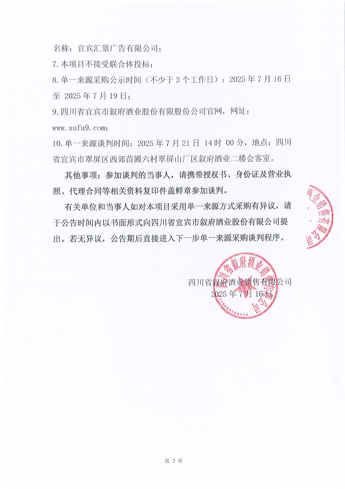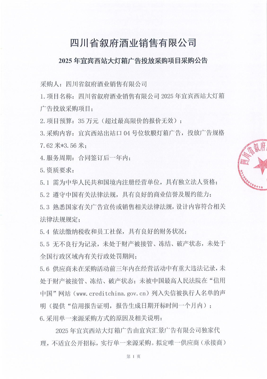 四川省敘府酒業(yè)銷售有限公司 2025年南京秋季糖酒會(huì)S9展位采購(gòu)公告單一來(lái)源采購(gòu)公告