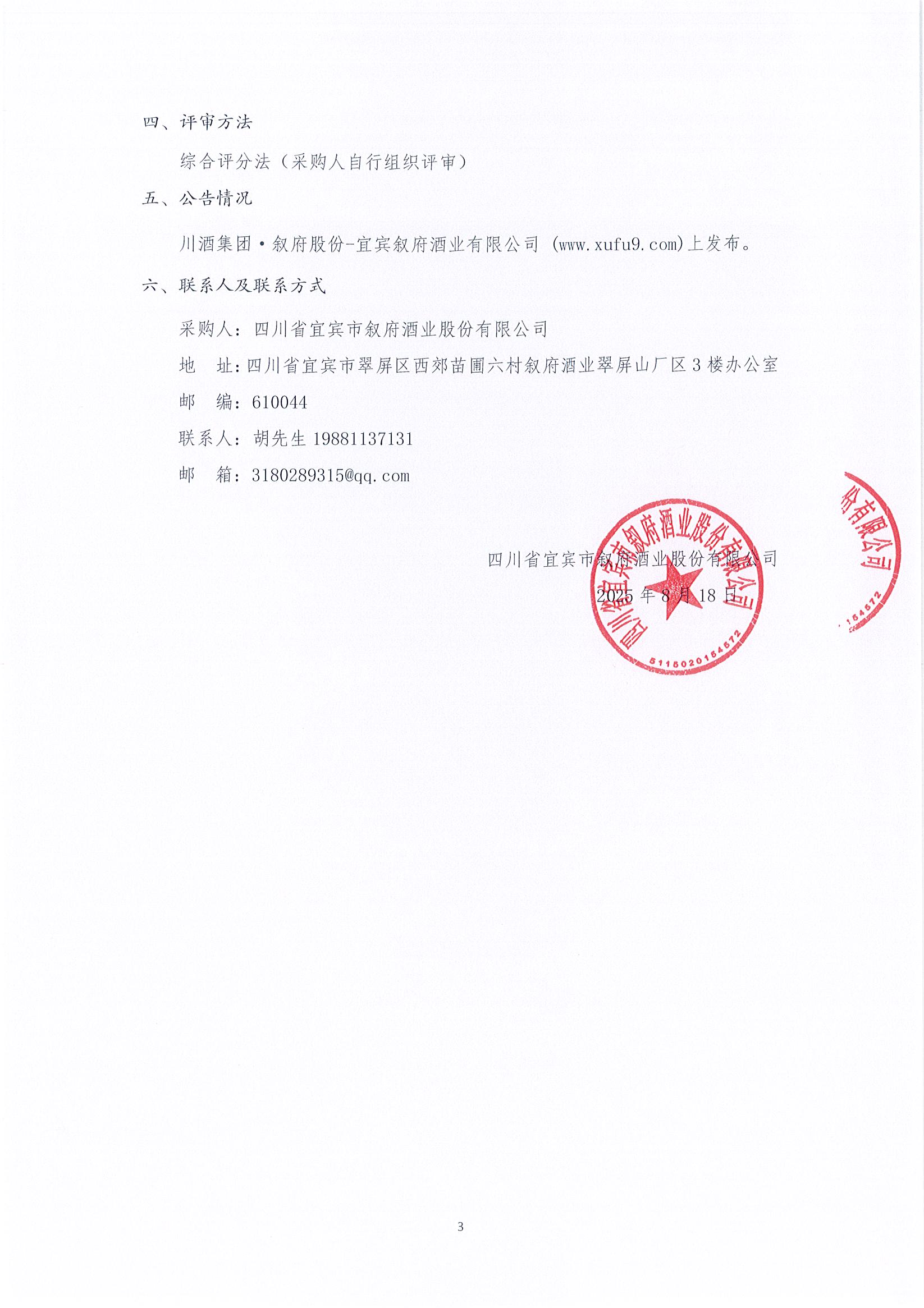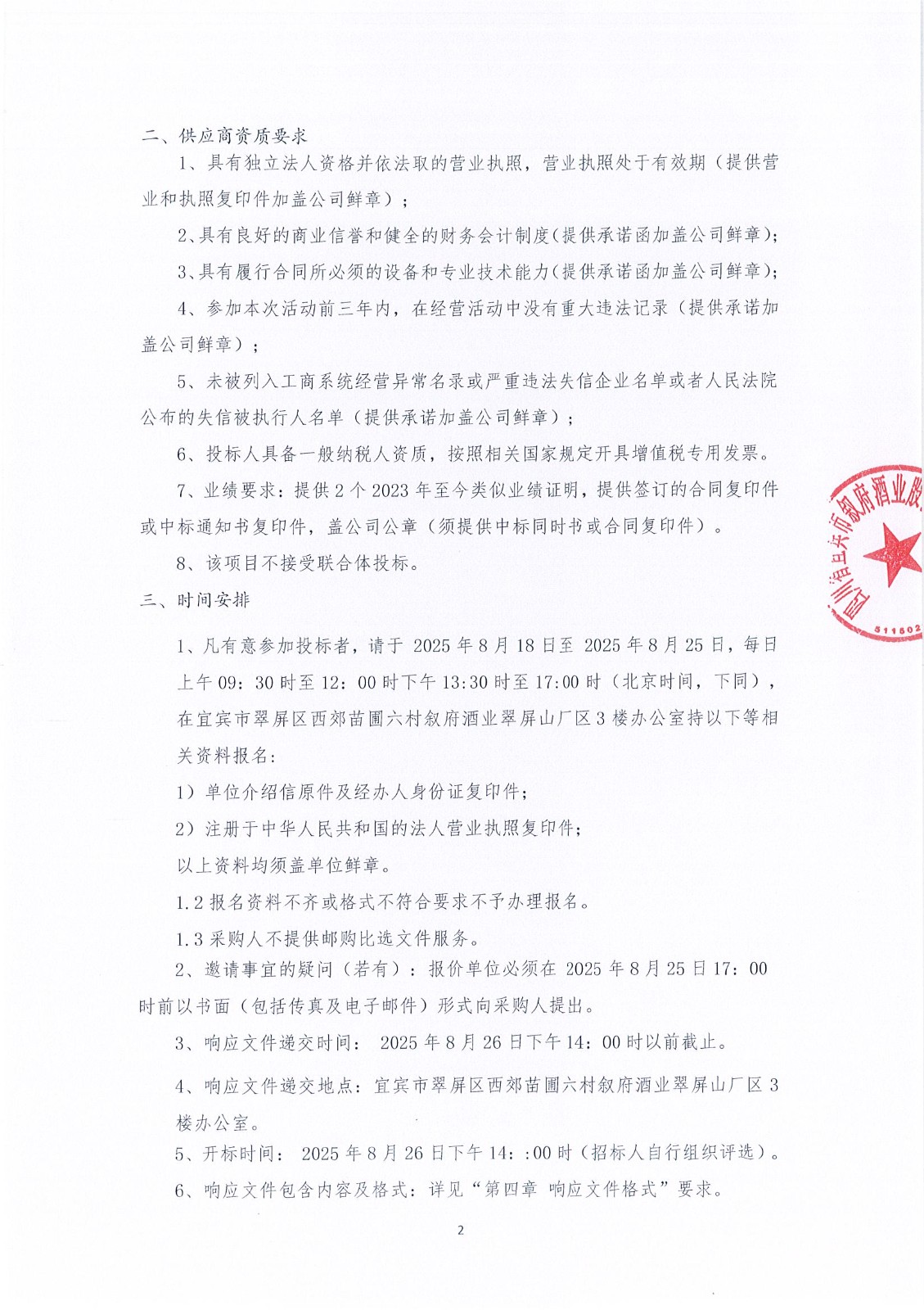 第二次四川省宜賓市敘府酒業(yè)股份有限公司2025年熱季檢修采購(gòu)項(xiàng)目比選結(jié)果公示