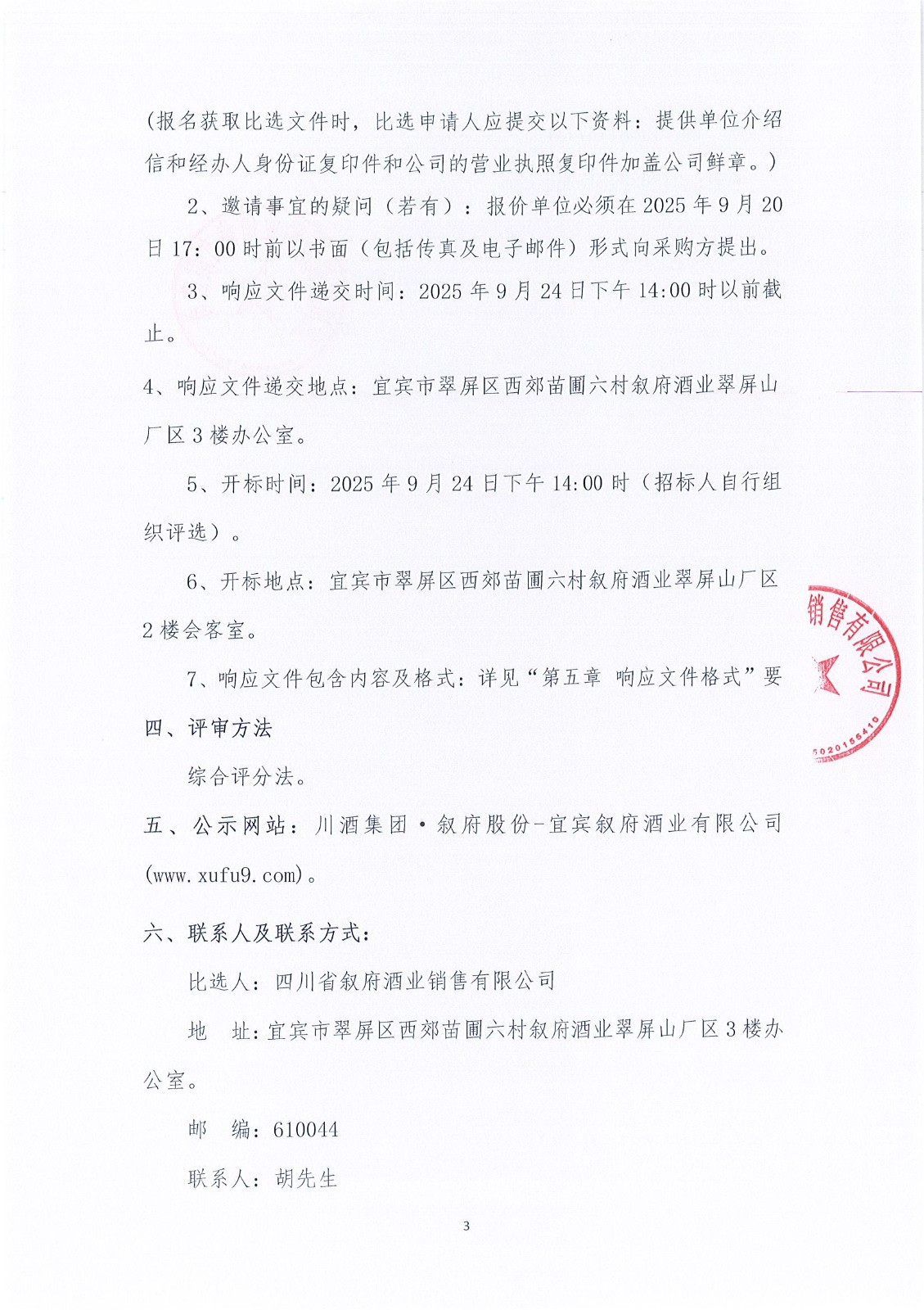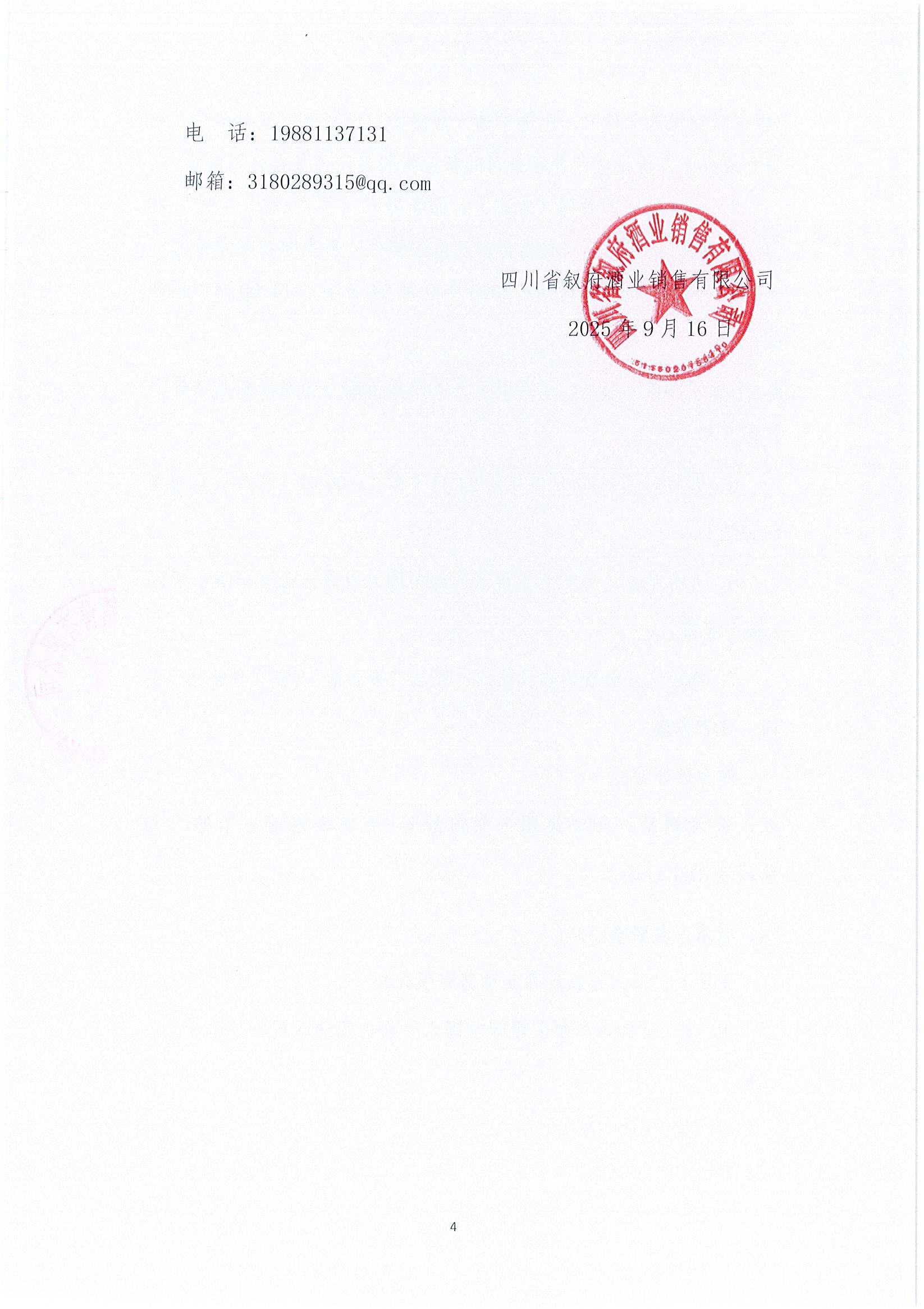 四川省宜賓市敘府酒業(yè)股份有限公司草簾采購項(xiàng)目比選結(jié)果公示