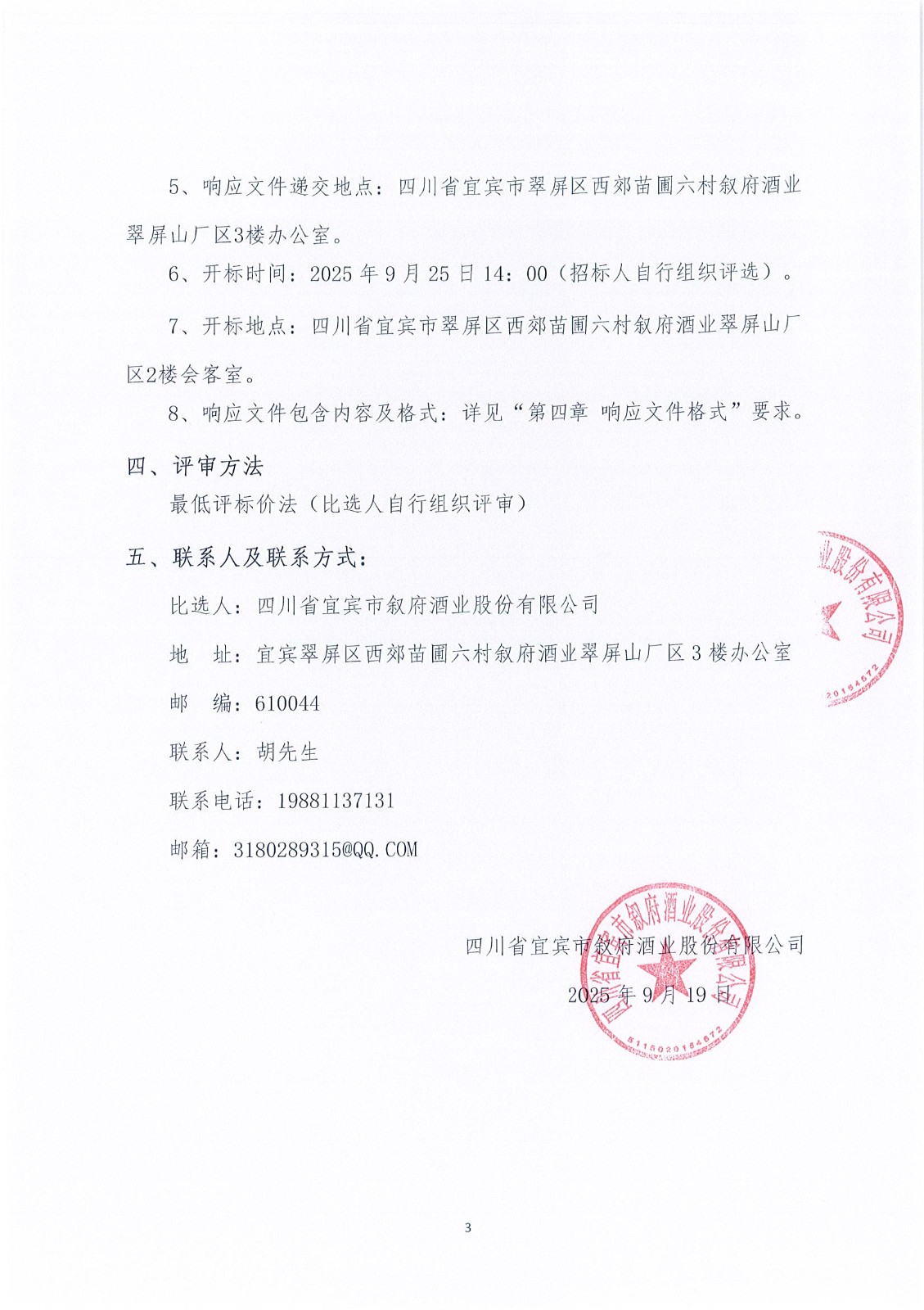 四川省宜賓市敘府酒業(yè)股份有限公司草簾采購(gòu)項(xiàng)目比選結(jié)果公示
