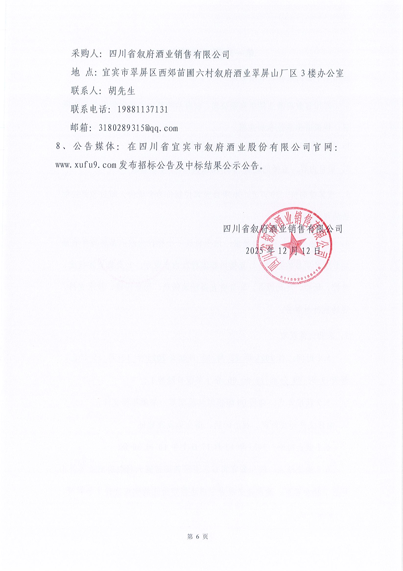 四川省敘府酒業(yè)銷售有限公司2025中國國際名酒博覽會展位設(shè)計(jì)與搭建采購項(xiàng)目比選結(jié)果公示公告
