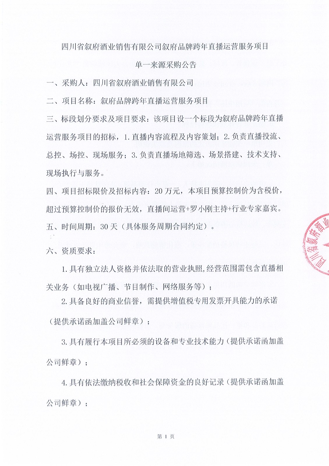 (第二次)四川省宜賓市敘府酒業(yè)股份有限公司李莊基地外接電競爭談判采購項(xiàng)目比選招標(biāo)公告