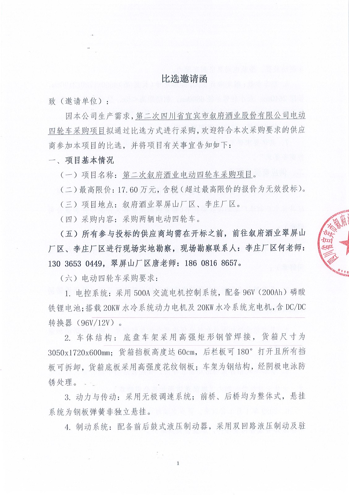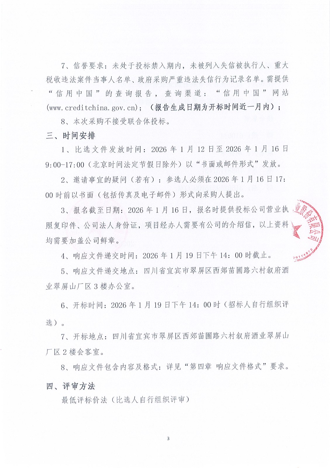 四川省宜賓市敘府酒業(yè)股份有限公司物流運輸服務(wù)采購項目比選招標公示公告
