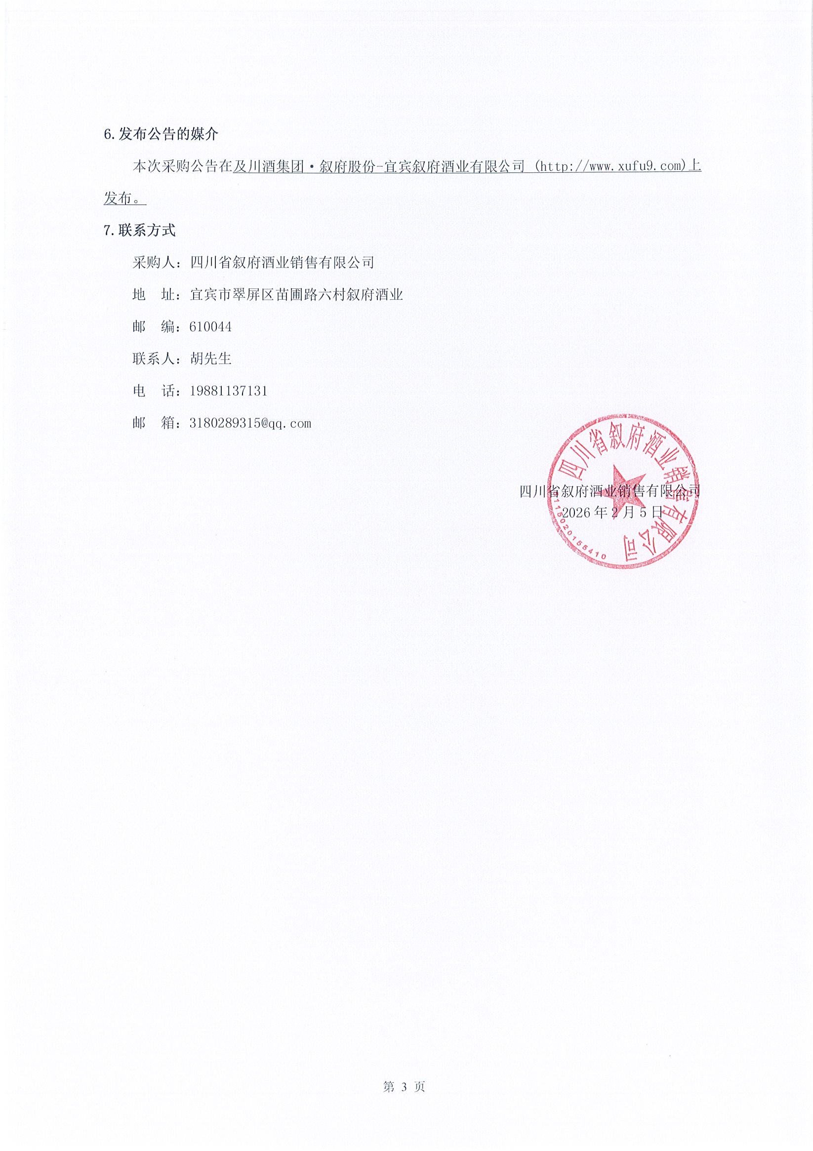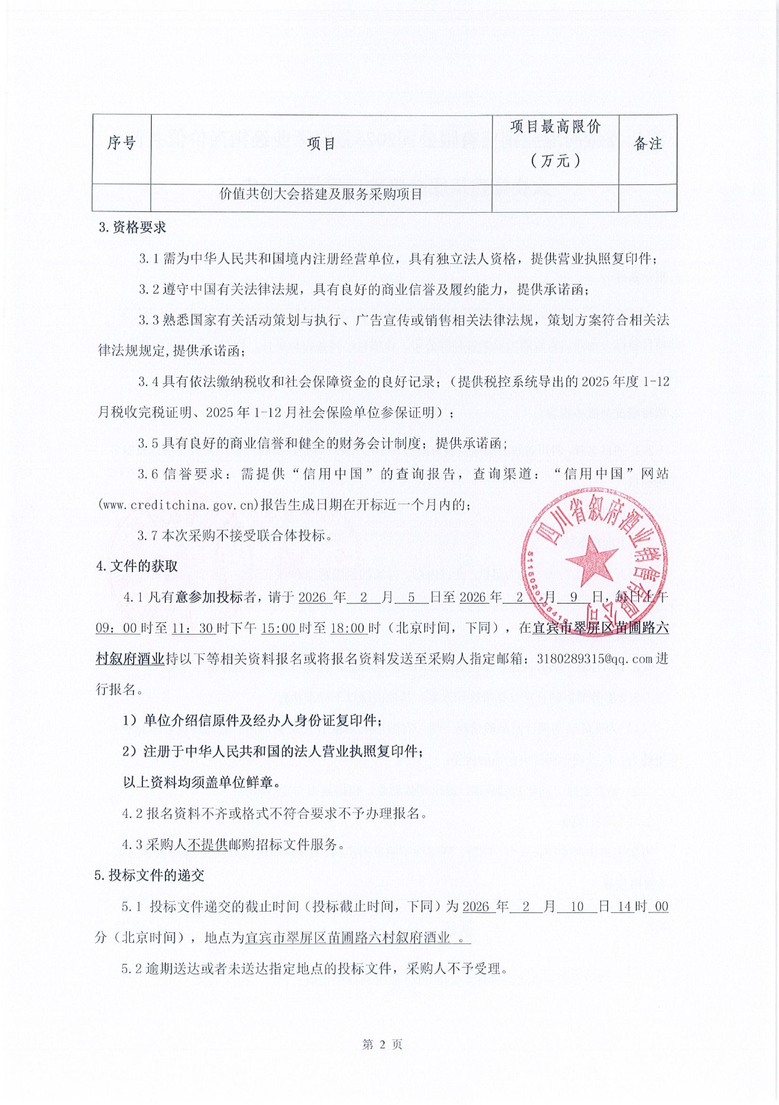 四川省敘府酒業(yè)銷(xiāo)售有限公司2026敘府酒業(yè)經(jīng)銷(xiāo)商價(jià)值共創(chuàng)大會(huì)搭建及服務(wù)采購(gòu)項(xiàng)目競(jìng)爭(zhēng)談判公告