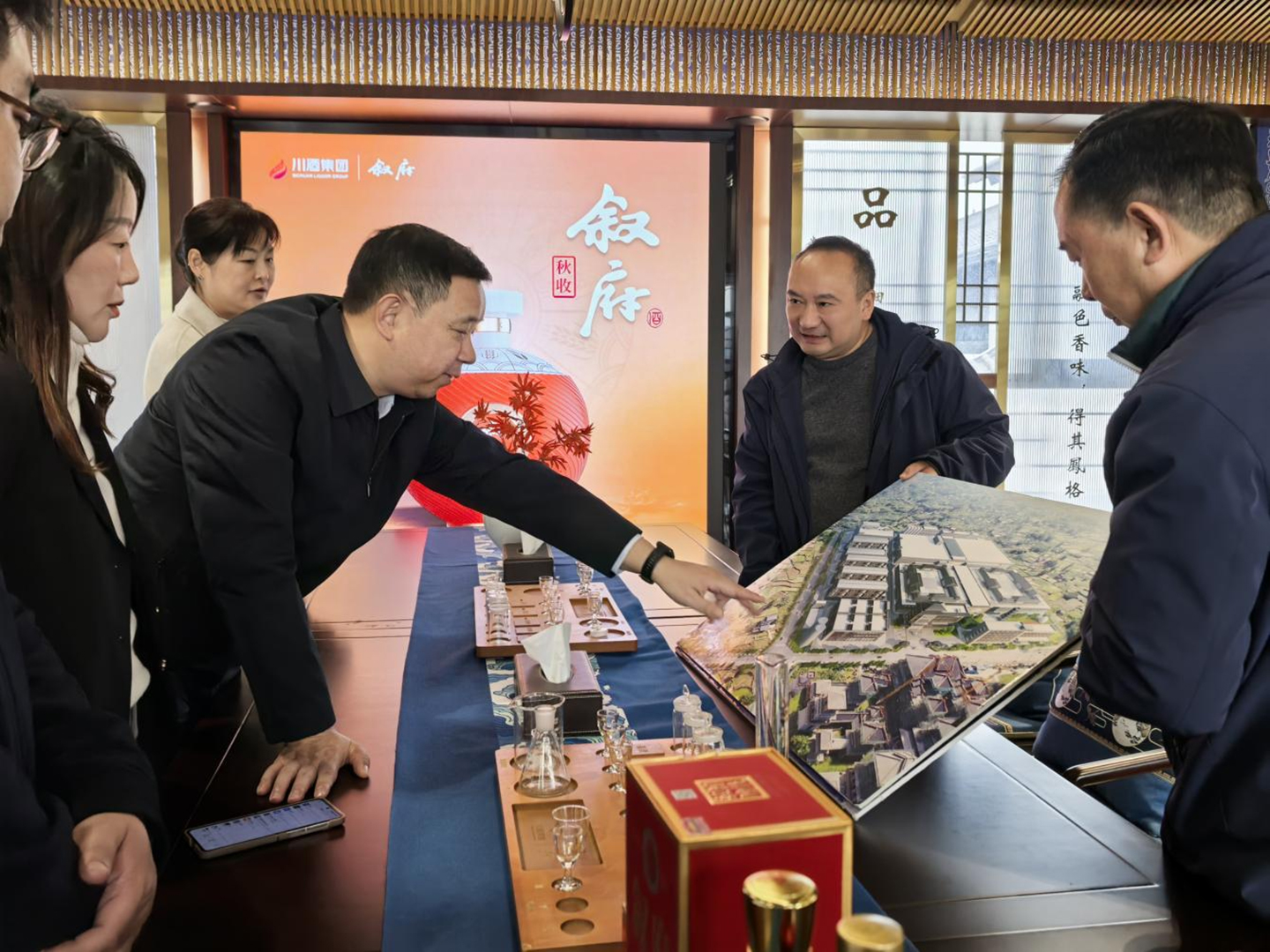 胡剛向李剛區(qū)長一行匯報了敘府酒業(yè)品牌培育、產品開發(fā)、市場拓展、項目建設等經營發(fā)展情況。近年來,在翠屏區(qū)委、區(qū)政府的正確領導下,在服務專班的關懷支持下,敘府酒業(yè)守正創(chuàng)新謀發(fā)展、跳起摸高跨臺階,實現了品牌層級和綜合實力的躍升。今年,敘府酒業(yè)從環(huán)境、社會、公司治理三個維度出發(fā),著力構建ESG戰(zhàn)略體系,在全力抓好經濟穩(wěn)增長的同時,積極踐行社會責任,實現了經營業(yè)績、社會效益“雙增長”,預計全年實現營業(yè)收入35億元,入庫稅金1.3億元,社區(qū)公益行等活動取得圓滿成功。胡剛表示,企業(yè)正在集中力量推進李莊基地二期配套建設,項目建成后將實現原酒產能和儲能倍增,助力打造“中國原酒夢工廠”。與此同時,企業(yè)充分利用翠屏山廠區(qū)生態(tài)和地利優(yōu)勢,致力于打造集釀酒體驗、原酒品鑒、觀光旅游、文化交流于一體的全景體驗式“敘府翠屏酒莊”,以促進酒旅融合產業(yè)的發(fā)展。